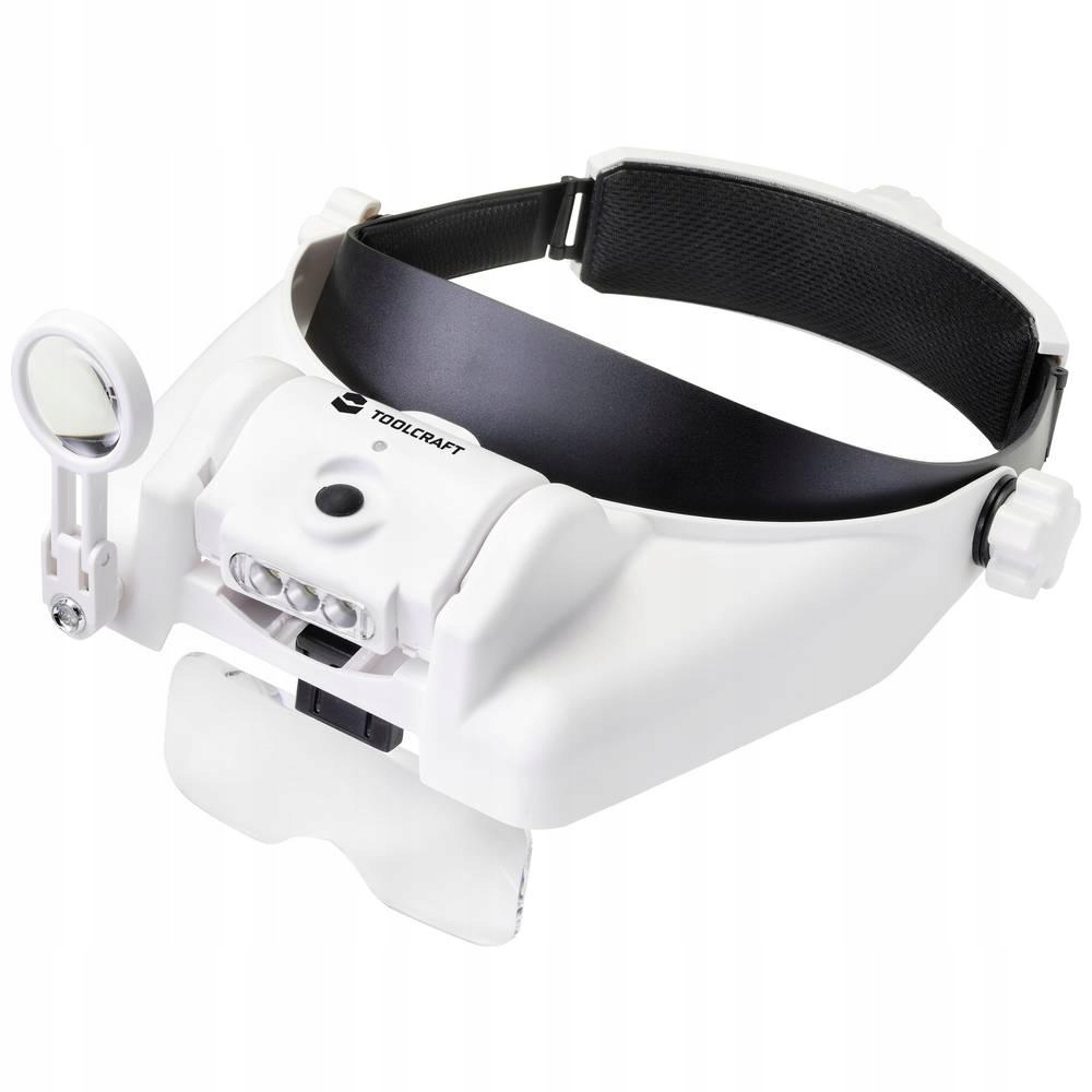 TOOLCRAFT TO-7440588 Светодиодный налобный фонарь со светодиодной подсветкой Коэффициент увеличения: 3,5 х, 2,5 х, 2,0 х, 1,5 х, 1,0 х Размер линзы: (Д х Ш) 100 мм х 40 мм, белый