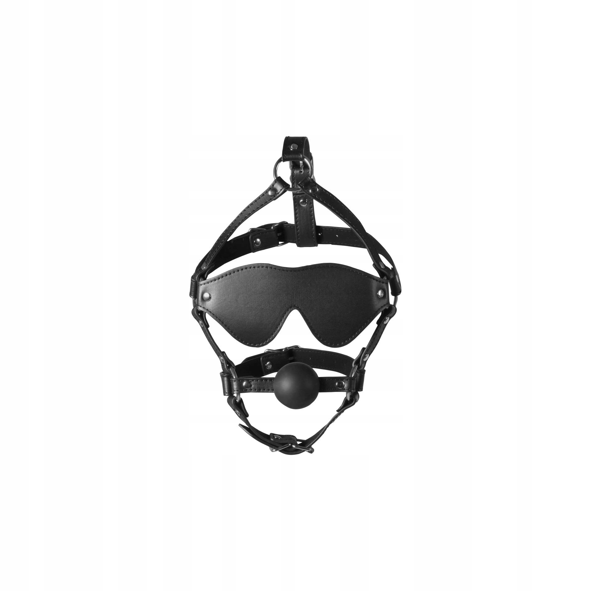 Головний ремінь із зав’язаними очима та суцільним м’ячним кляпом – чорний