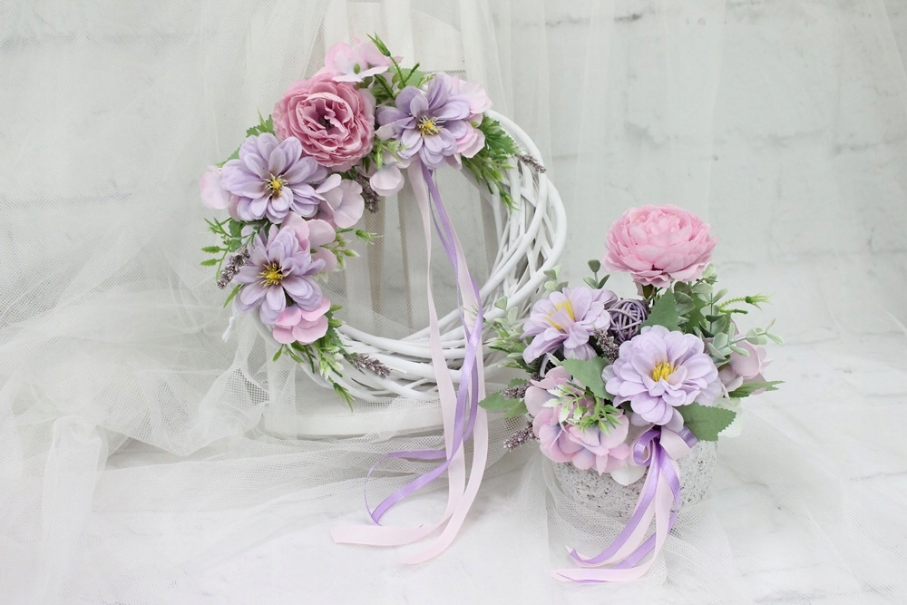 Он будет изготовлен вручную в нашей мастерской с максимальной тщательностью и вниманием к каждой детали с использованием качественных искусственных цветов.