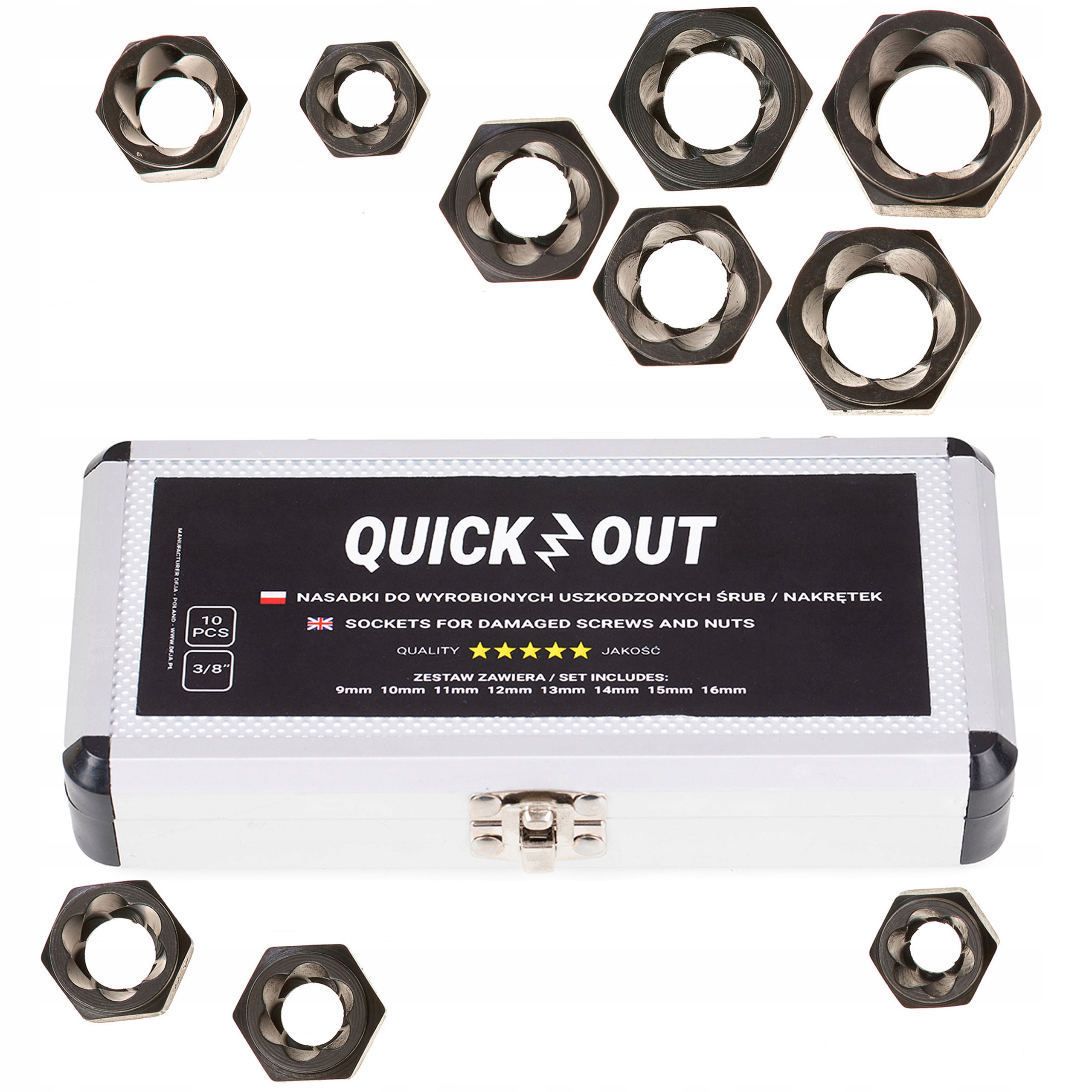 НАБОР НАСАДОК ДЛЯ СНЯТИЯ ВИНТОВ С ОБРАБОТАННОЙ/ПОВРЕЖДЕННОЙ ГОЛОВКОЙ МАРКИ QUICK OUT