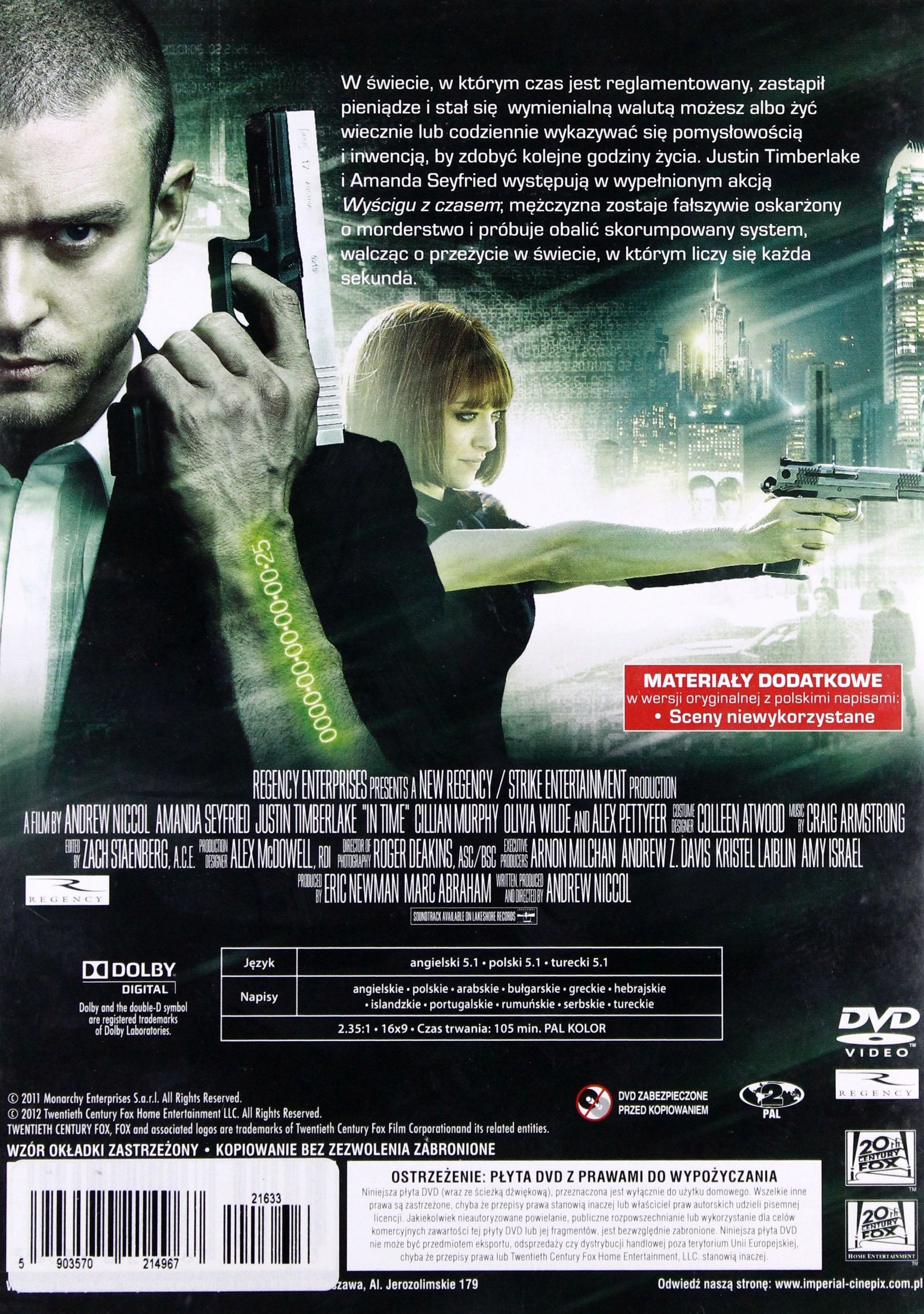 В мире, где время нормировано, заменило деньги и стало конвертируемой валютой, вы можете либо живи вечно, либо проявляй изобретательность и изобретательность каждый день, чтобы выиграть больше часов жизни. Джастин Тимберлейк и Аманда Сейфрид играют главные роли в остросюжетном фильме "Гонка против времени". Мужчина ложно обвинен в убийстве и пытается разрушить коррумпированную систему, борясь за выживание в мире, где каждая секунда на счету.