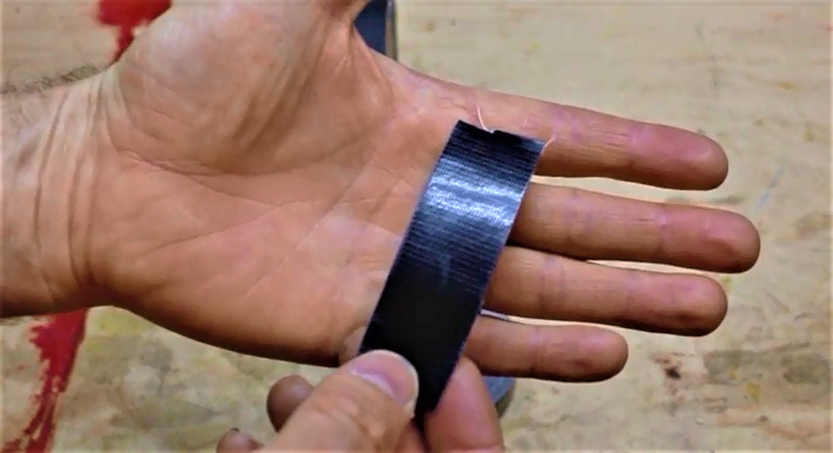 лента гориллы. Толще стандартной клейкой ленты. Это связано с тем, что клейкий слой в 2 раза больше (и во много раз сильнее), чем в соревнованиях, а водонепроницаемое внешнее покрытие способно выдержать любые погодные условия. Между этими двумя слоями существует усиливающая секция, которая поддерживает внешний и внутренний слой вместе и увеличивает прочность каждого куска ленты.