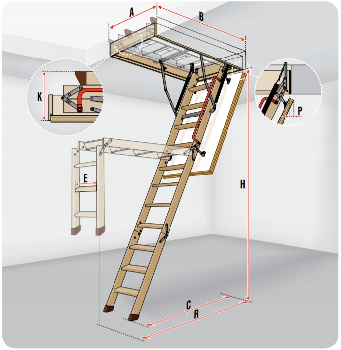 Лестницы LWK Plus отличаются инновационными решениями, которые обеспечивают высочайший комфорт использования, гарантируют очень хорошие теплоизоляционные свойства и позволяют еще проще и быстрее установить лестницу на потолок. Лестницы LWK Plus имеют эстетично отделанный белый теплоизоляционный люк и стандартно оснащены перилами и ножками.