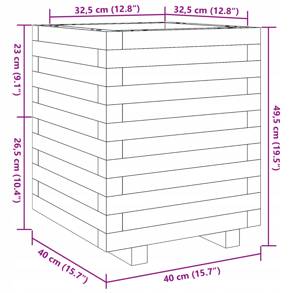 Садовый цветочный горшок, белый, 40x40x49,5 см, массив сосны