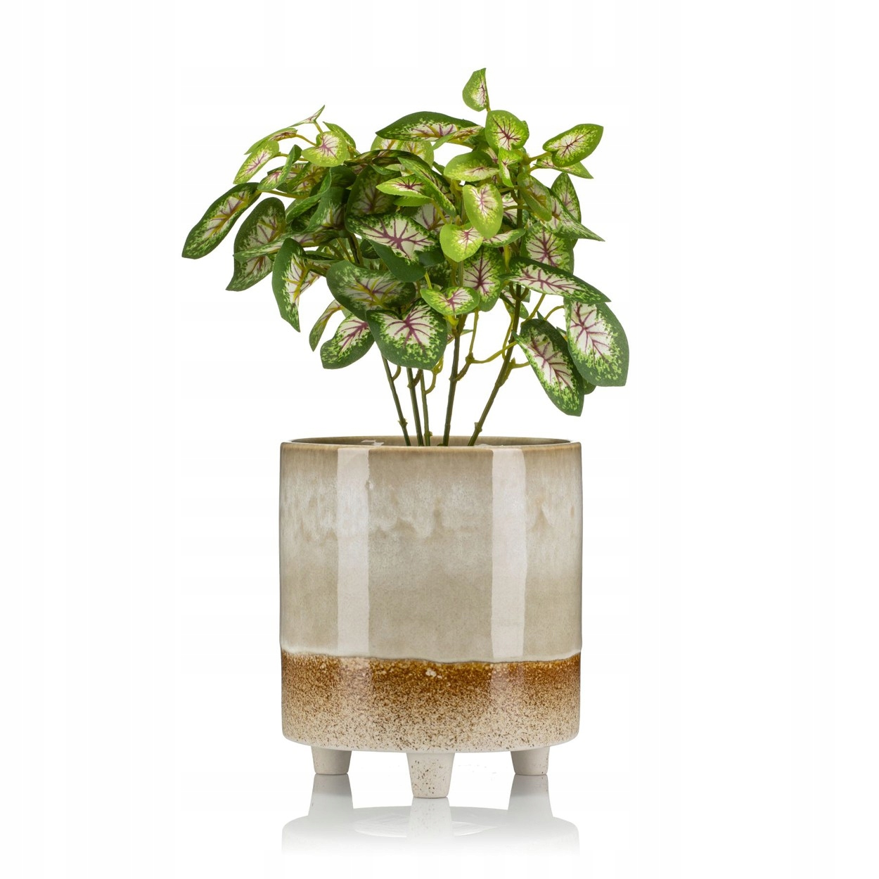 Фарфоровый цветочный горшок на ножках в взаимопроникающих оттенках бежевого и коричневого. Он отличается долговечностью и стабильностью. Глазурованная поверхность придает ей элегантный вид, который прекрасно вписывается в различные интерьеры, придавая им неповторимый шарм.