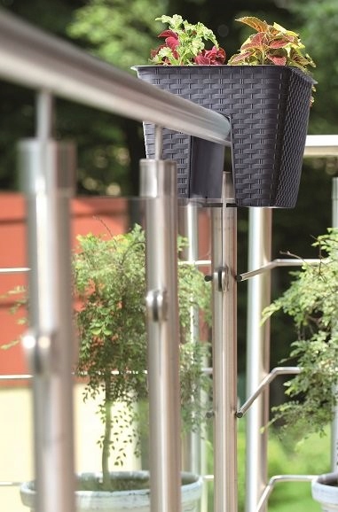 Прямоугольный короб для крепления на поручни и балюстрады. Он занимает место по обе стороны от перил, поэтому производит впечатление при взгляде как снаружи, так и внутри квартиры. Из экзотической коллекции РАТОЛЛА с фактурой, точно имитирующей косу ротанга.