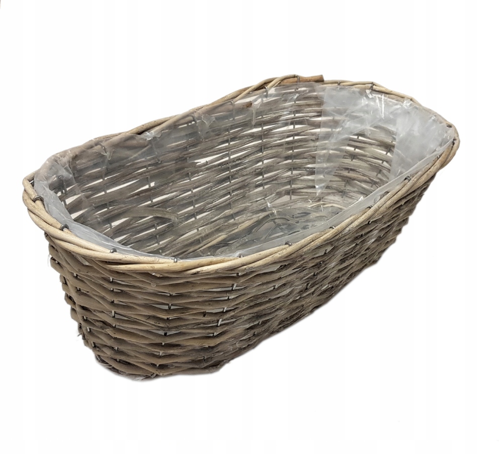 изготовлено из натурального материала: плетение; ремесло; натуральное плетение: цветовые оттенки коричневого и серого, форма овала; плавно змеится вниз; внутри покрыта прозрачной защитной пленкой, для домашнего и садового использования.