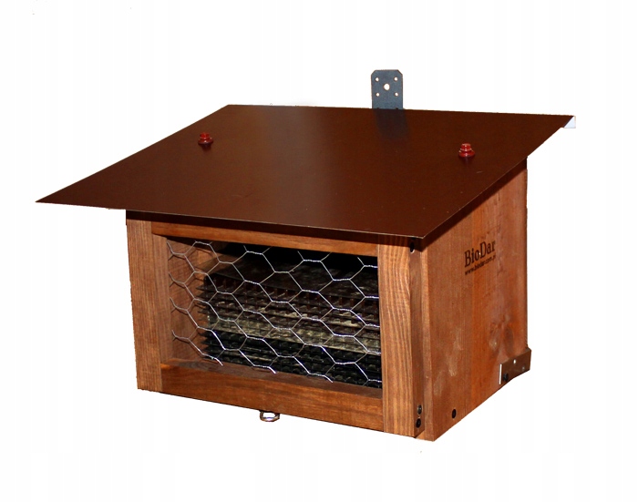- 2 выдвижных крючка на нижней стороне гостиницы для крепления инкубационной кассеты BioDar с коконами насекомых (выводная кассета для красной пчелы-каменщика доступна на другом аукционе),