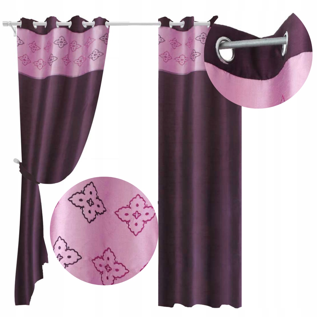 Штора Камелия насыщенного фиолетового оттенка с декоративной вышивкой на более светлом фоне – идеальный выбор для элегантного интерьера. Блестящая тафта и вышитый пояс в верхней части придают стиль и легкость пространству. Идеально подходит как для классических, так и для современных аранжировок.
