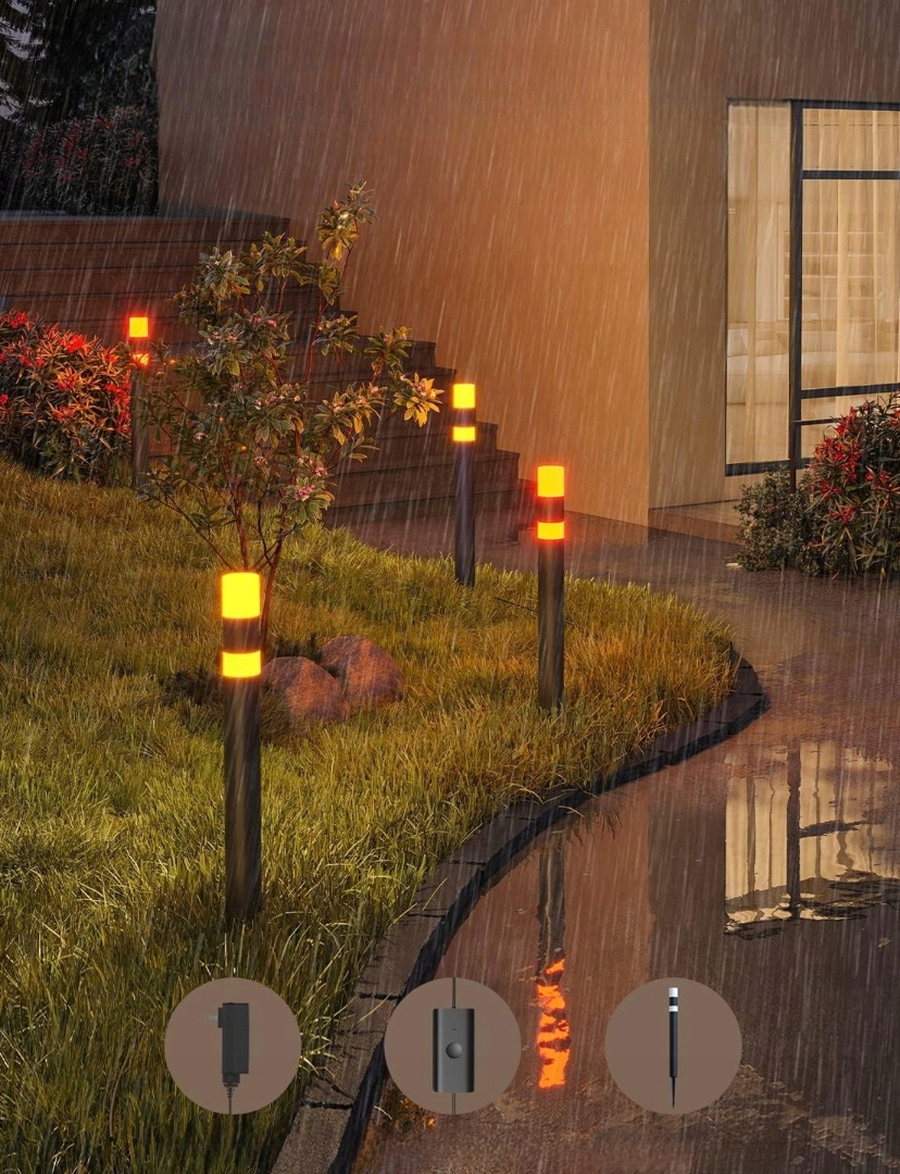 Ландшафтное освещение изготовлено из прочного алюминия с окрашенным покрытием, достаточно прочным, чтобы выдерживать суровые условия. По сравнению с солнечными фонарями этот комплект кабелей обеспечивает более стабильное соединение и более высокую яркость — 250 люмен.