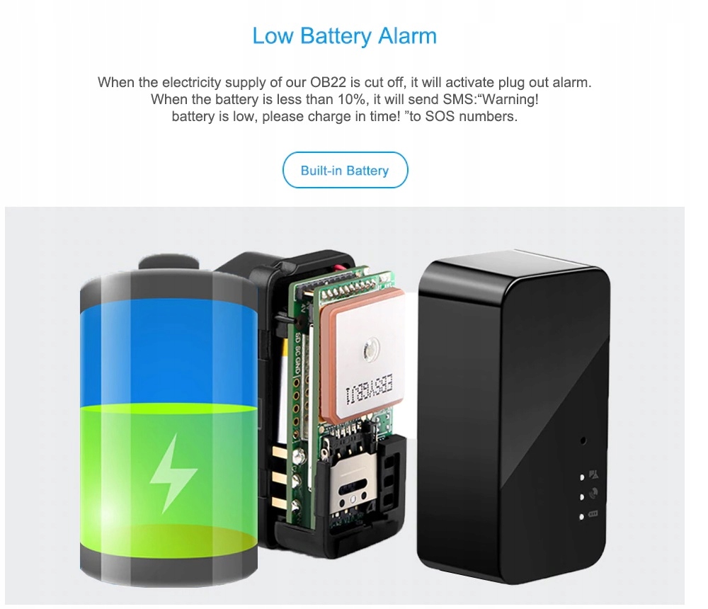 -Шоковая сигнализация; Сигнализация низкого заряда батареи; Сигнализация превышения скорости