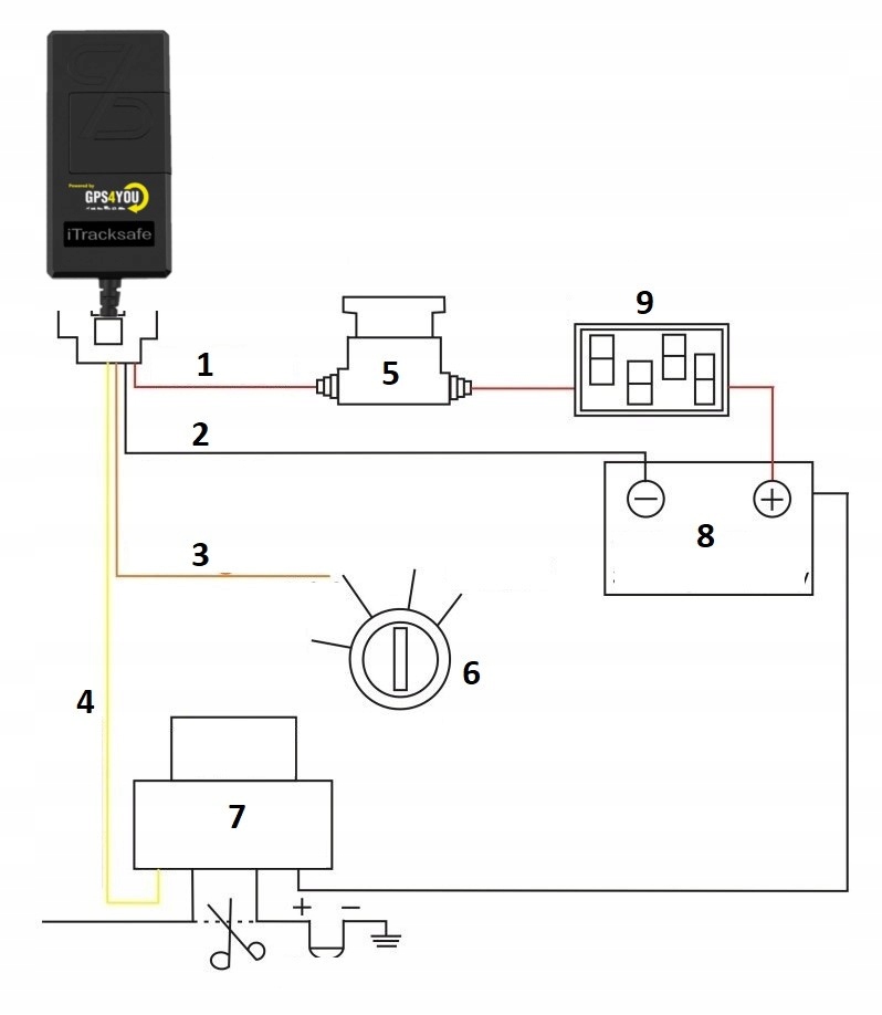 4 - Кабель управления реле (включение питания /выкл., например: топливный насос)