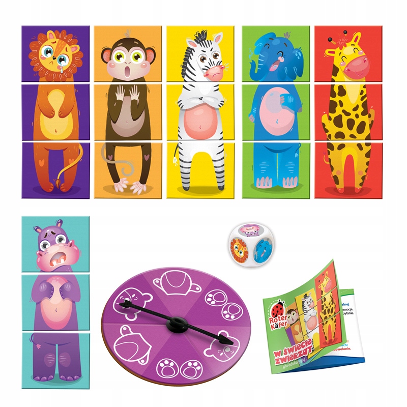 Цель игры — расставить всех животных, состоящих из трех частей. Сначала мы бросаем кубик, чтобы узнать, какое животное мы поставим первым. Затем поворачиваем стрелку на колесе, чтобы нарисовать компонент животного. Берем элемент, на который указывает стрелка, и продолжаем вращать колесо. Когда все животное решено, мы снова бросаем кубик и начинаем решать новые! Все животные — дубликаты, но каждый из них находится на разном фоне. Так что будьте осторожны при расстановке, чтобы не перепутать элементы и познакомиться с цветами. Расположите животных по одному и расскажите интересные факты из животного мира. Этот вариант игры способствует развитию логического мышления и концентрации внимания, тренирует сообразительность и пространственное восприятие.