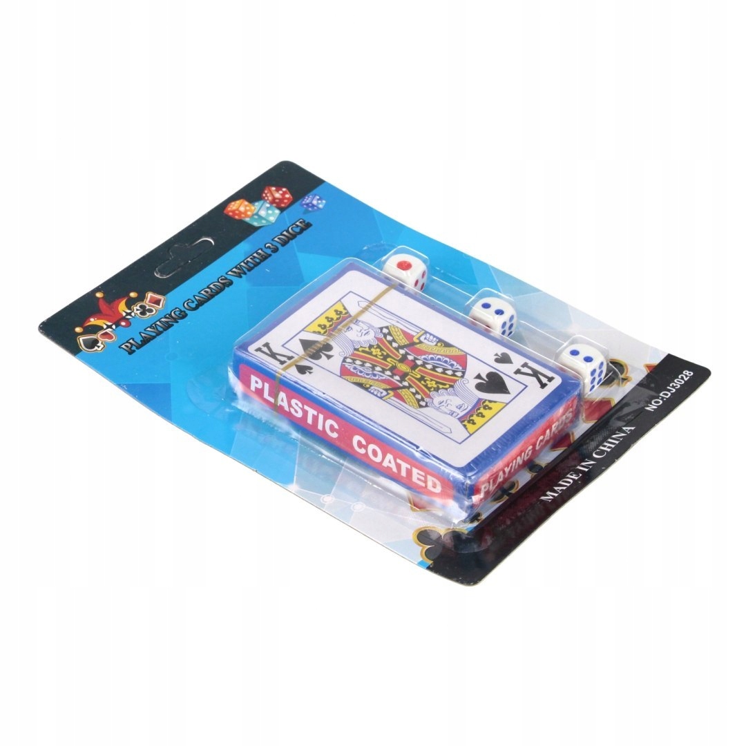 Преимущества продукта: Это классический набор, включающий колоду карт и набор игральных костей. Они идеально подходят любителям как карточных игр, так и случайных бросков кубиков. В комплекте: колода карт, 3 кубика. Размеры/вес/батарейки: размеры изделия длина х высота х глубина см: 6х9х2, размеры упаковки: длина х высота х глубина. см: 13х17х2, вес изделия в упаковке кг: 0,08 кг, не требует батареек. Продукт предназначен для детей от 3 лет. Упакован в блистер. В картонной упаковке по 240 штук.