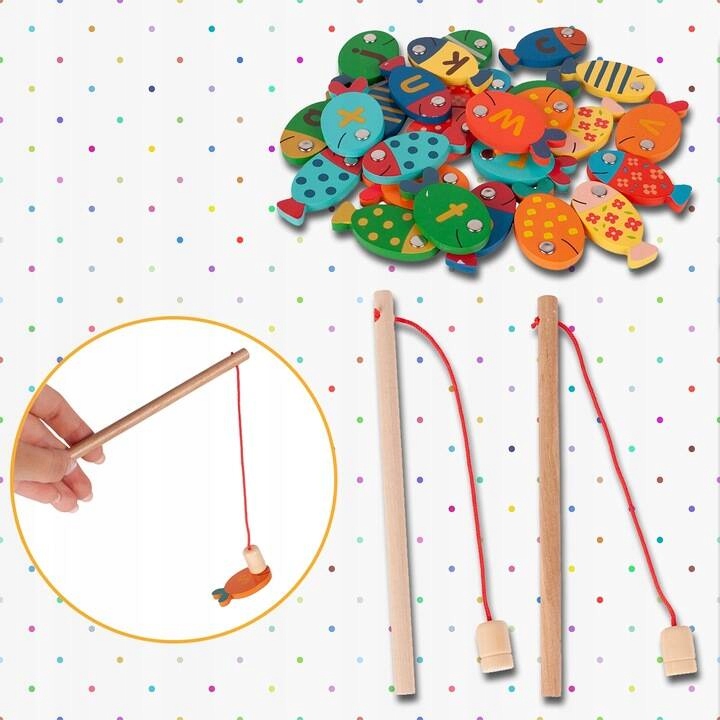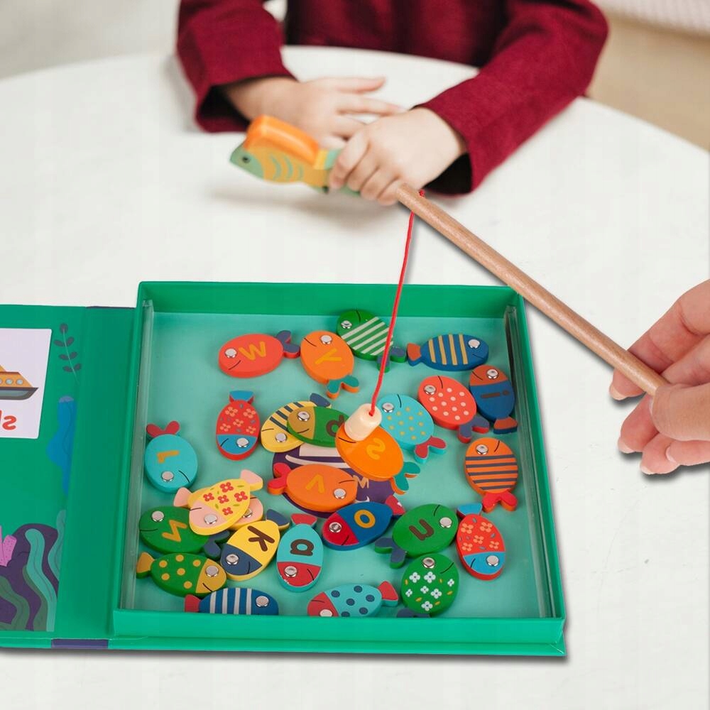 С нашим очаровательным набором вы почувствуете себя настоящим рыбаком! Постарайтесь поймать всю рыбу деревянной удочкой. Игрушка стимулирует зрительную и двигательную координацию вашего ребенка. Интересный набор цветов и форм невероятно развивает тактильные и зрительные стимулы, а интересное графическое оформление стимулирует ребенка экспериментировать и творчески мыслить. Дополнительным преимуществом нашей игры является возможность выучить основные слова на английском языке и правильно их написать.