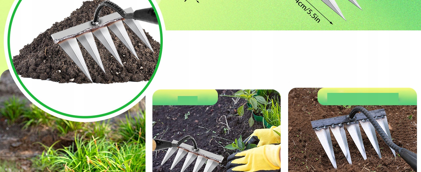 НОВАЯ ЭФФЕКТИВНАЯ САДОВАЯ КОНСТРУКЦИЯ: Благодаря специальной конструкции с 5 зубьями садовые грабли легко вгрызаются в различные типы почвы и могут использоваться для повседневных садовых задач, таких как прополка, рыхление почвы и посадка растений. овощи, обрезка корней сорняков. легкий и экономичный ручной садовый инструмент.