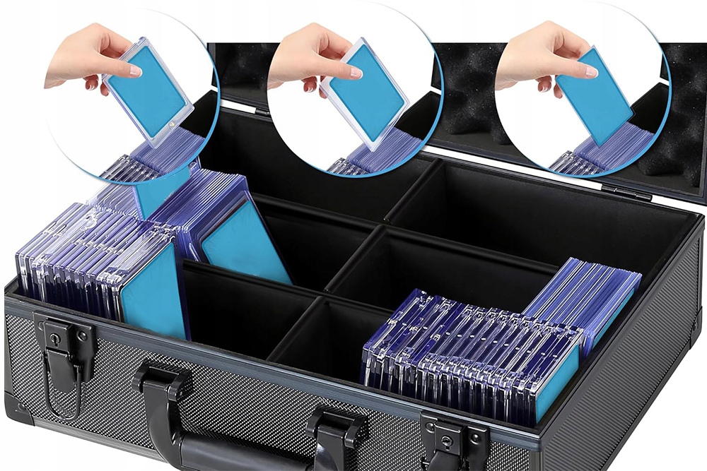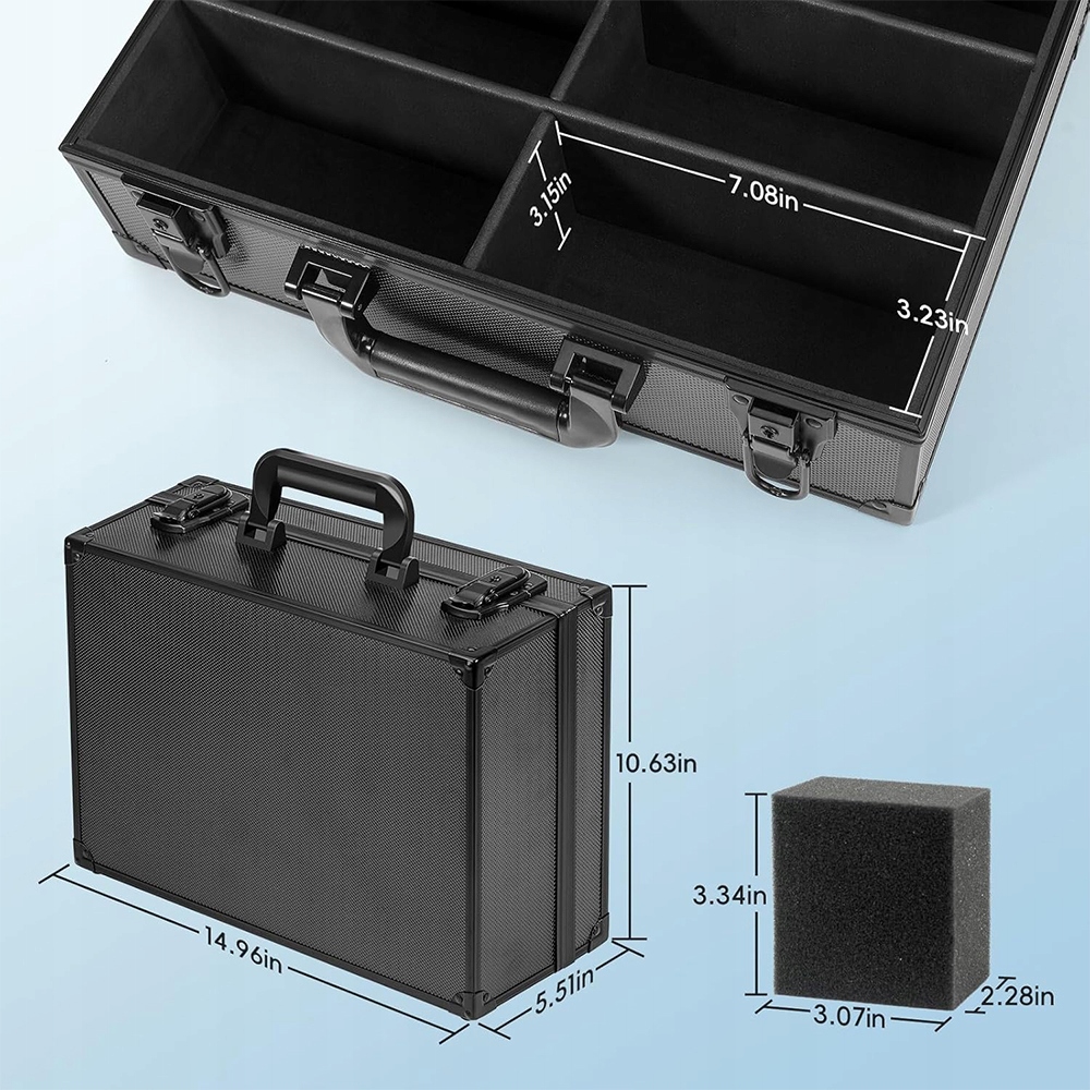 ✨✨Материалы высочайшего качества:Каркас изготовлен из алюминиевого сплава, поверхность панели — из АБС-пластика, внутренняя обшивка — из материала ЭВА. Он имеет шесть отделений для карт с тремя мягкими губками, которые сохраняют карты в целости и сохранности. Размер каждого отсека составляет 177 × 88 × 81 мм. Кроме того, в комплект входят два ключевых замка для дополнительной безопасности.