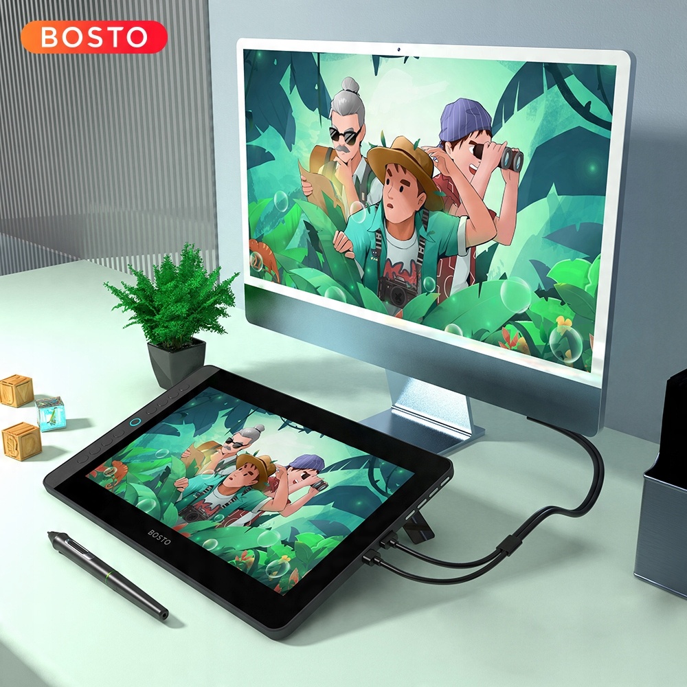 - Графический планшет BOSTO имеет широкий угол обзора 178°, чрезвычайно четкое изображение и высокое качество без выцветания!