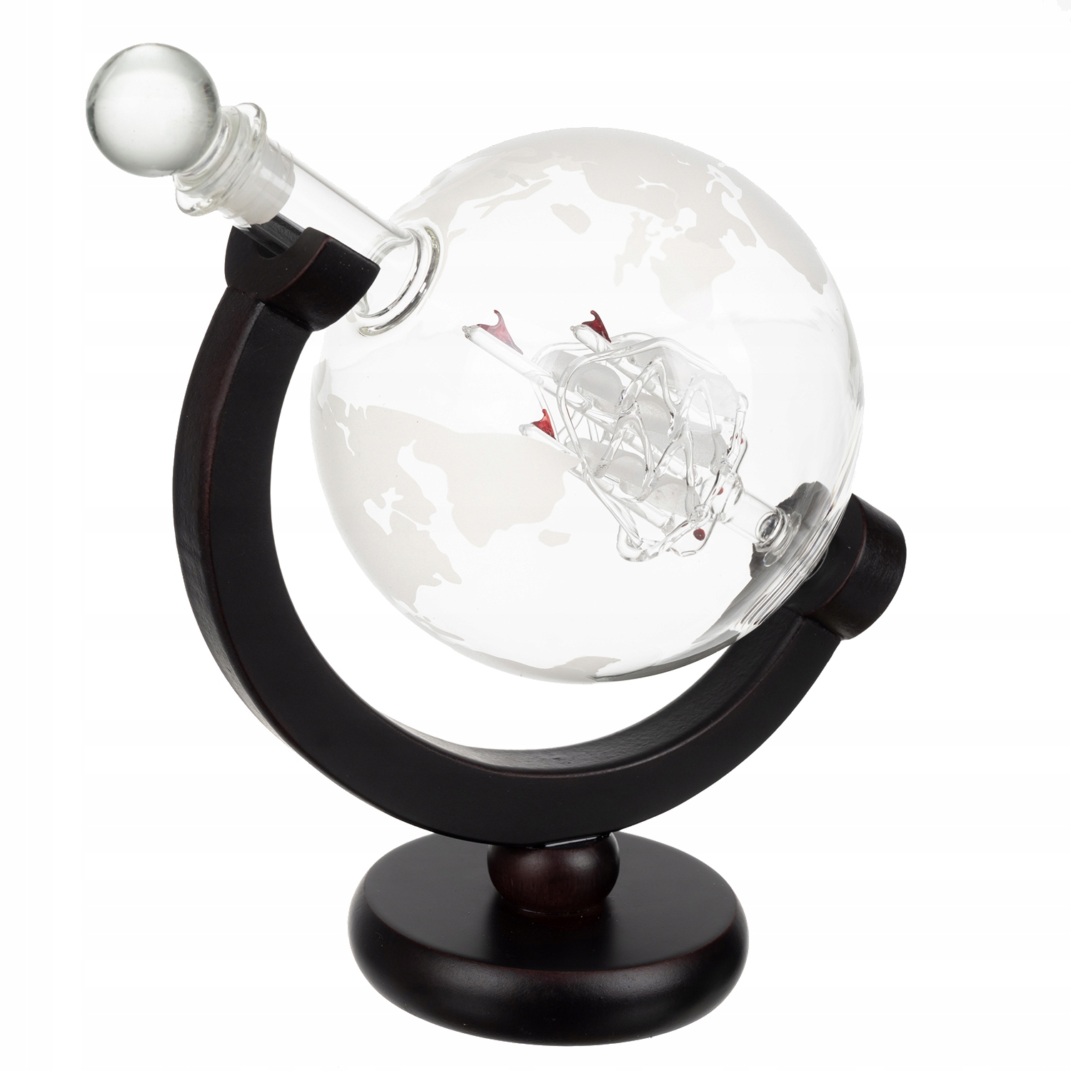 - Графин для виски «Глобус» с кораблем внутри и выгравированной картой мира, емкостью 850 мл.