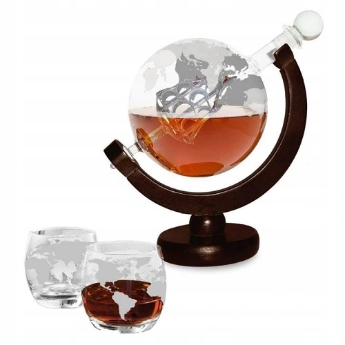 ГРАФИН ДЛЯ ВІСКІ ГЛОБУС НАБІР СТАКІВ ДЛЯ ВІСКІ ДЕКОРАЦІЯ ОРНАМЕНТ ПОДАРУНОК