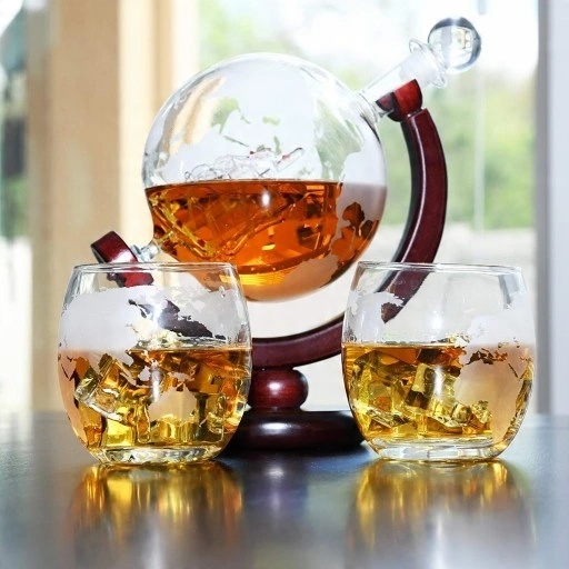 Графин изготовлен из боросиликатного стекла, известного своей прочностью и элегантностью. В его уникальном дизайне присутствует элемент карты мира и модель корабля, что придает еще больше индивидуальности презентации вашего любимого виски.