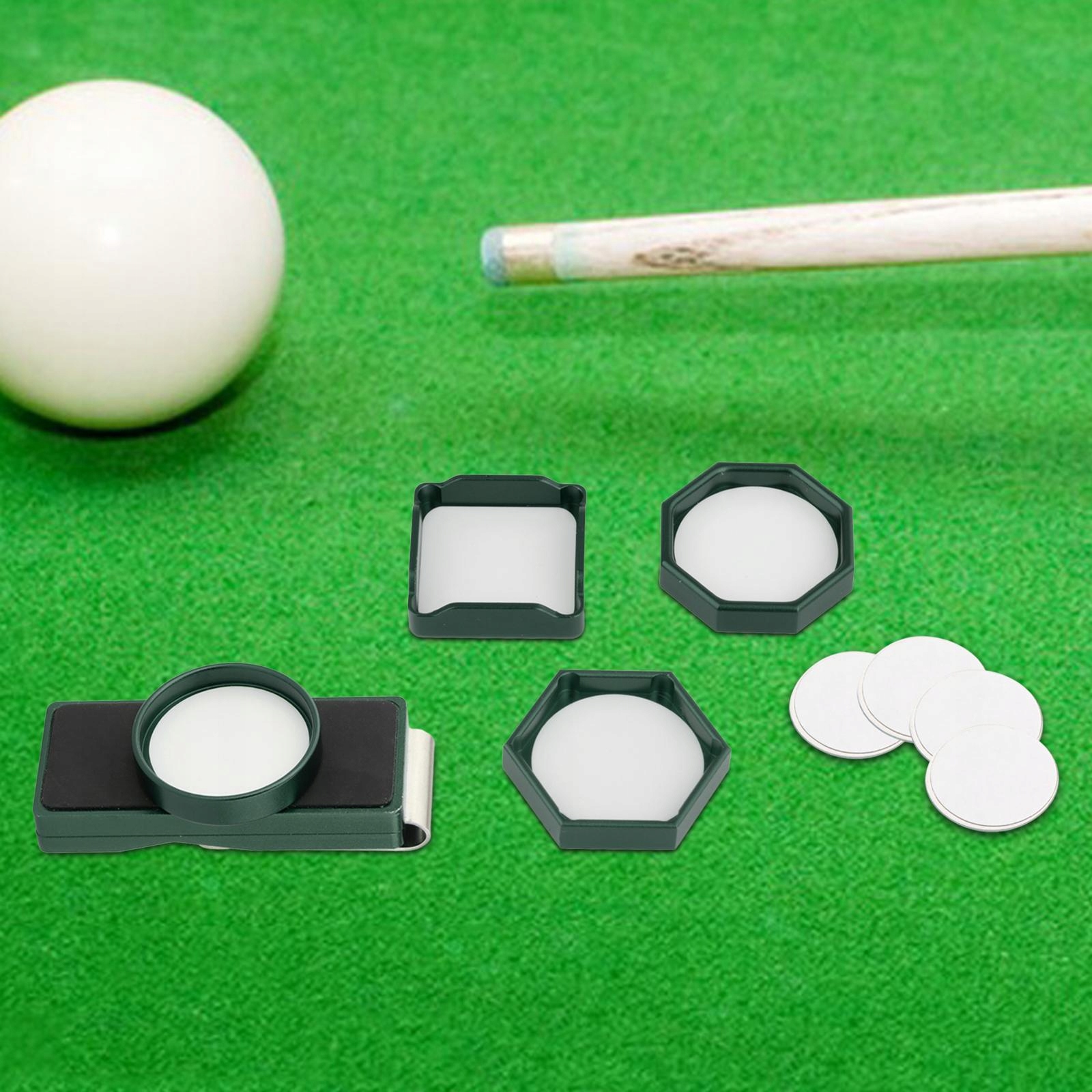[Пакет содержит] Вы получите 4 ручки для бильярдов (колесо, шестиугольники, восьмиугольник и квадрат), 1 карманный клип для мела
