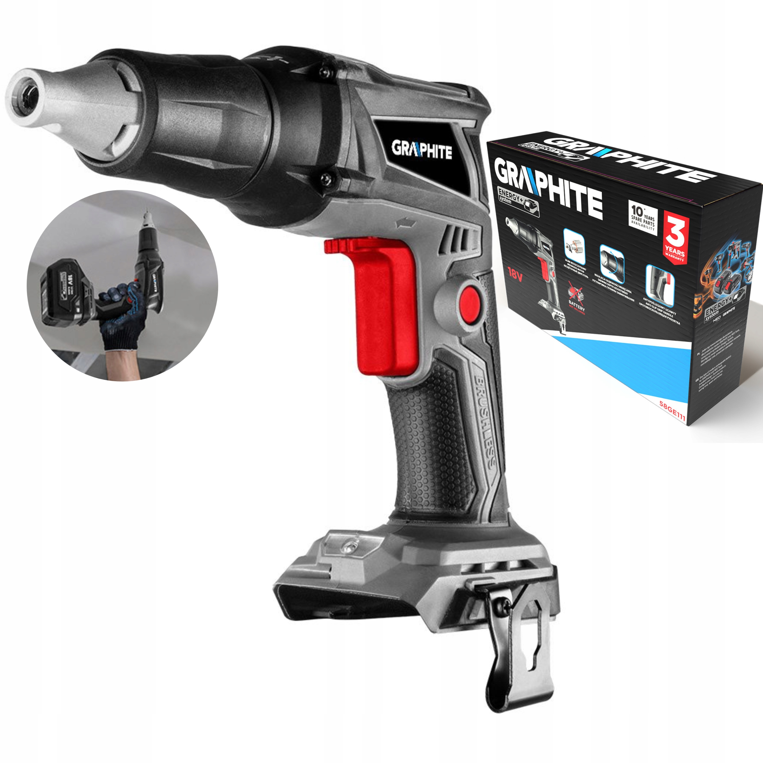 Удобная батарейная система для устройств батареи. Выделенные батареи для графитовых электроинструментов предлагаются в широком диапазоне емкости. Система Energy+ обеспечивает комфортное использование многих устройств, не опасаясь расширения кабелей или поиска источников локального источника питания. Отвертка в наборе без батареи.