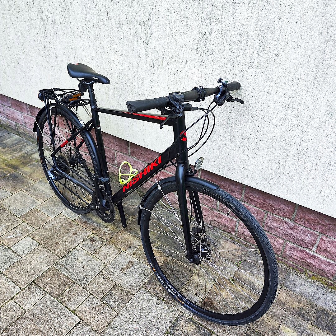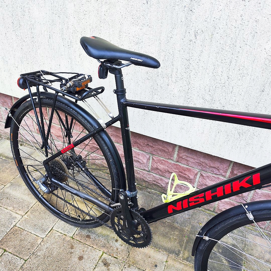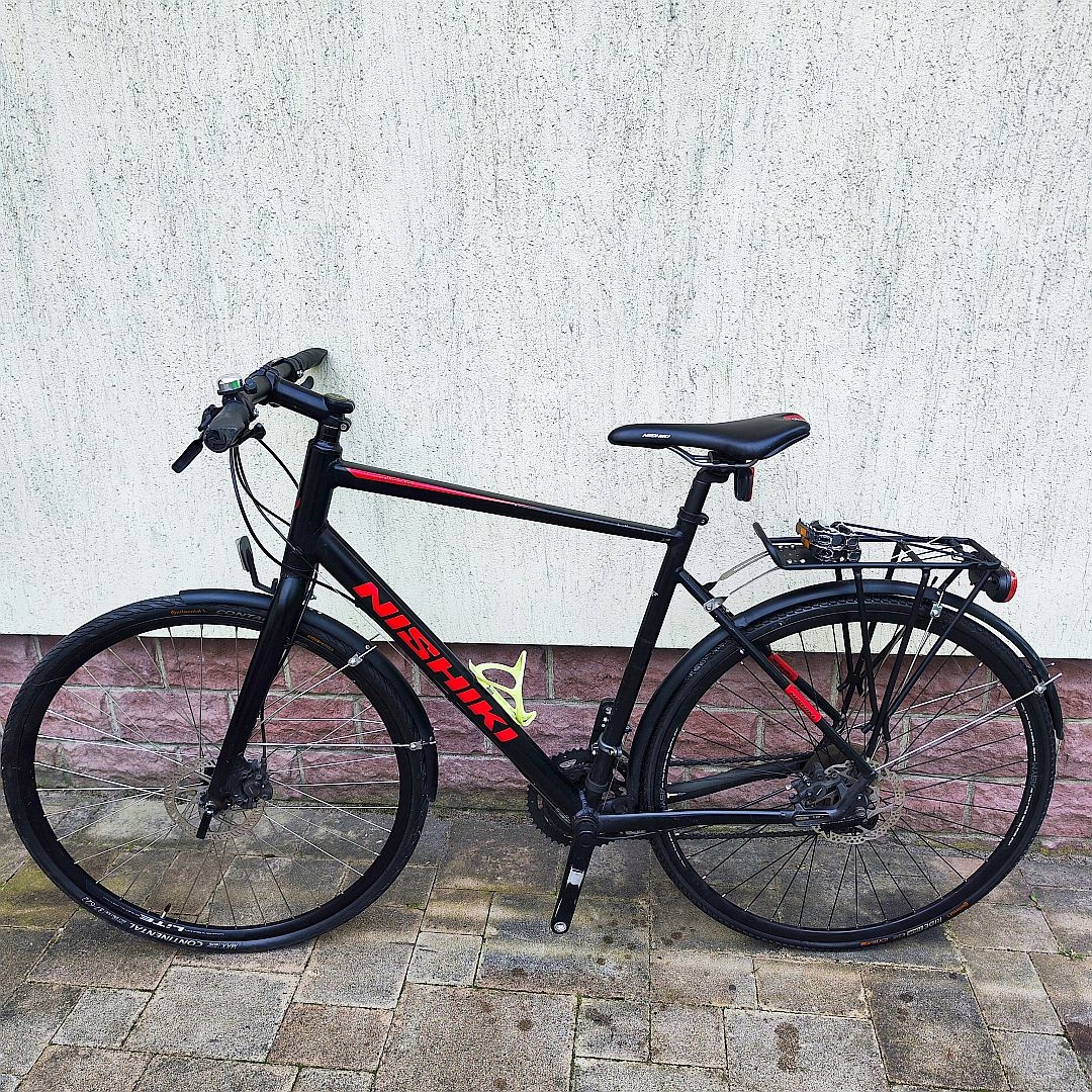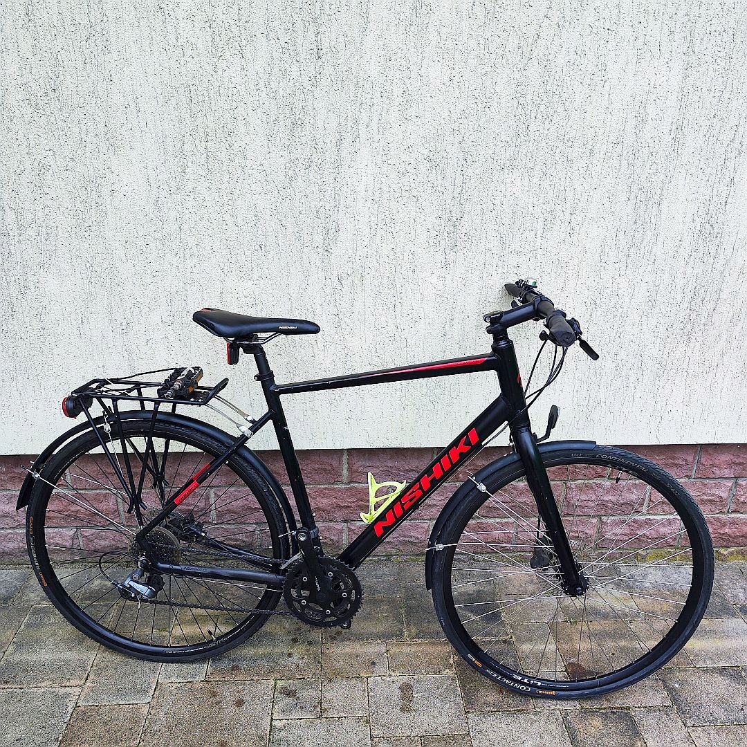 GRAVEL NISHIKI COM AIR HYDRAULIKA — велосипед для велокросса с 21-дюймовой рамой и 28-дюймовыми колесами. Этот велосипед производится безымянным брендом, но доступен в черном цвете. Он идеально подходит как для езды по городу, так и для более длительных маршрутов. используется как женщинами, так и мужчинами.