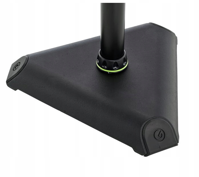 Подставка для монитора Gravity SP 3202 VT с регулируемым наклоном (черная) имеет тяжелое треугольное основание из чугуна, контактную поверхность размером 250 x 250 мм и пенопластовую подкладку для амортизации. Опора может наклоняться на угол до 10° для оптимального расположения громкоговорителя, а высота регулируется в пределах 900–1500 мм. В комплект входит набор шипов для акустической изоляции трибун от пола.