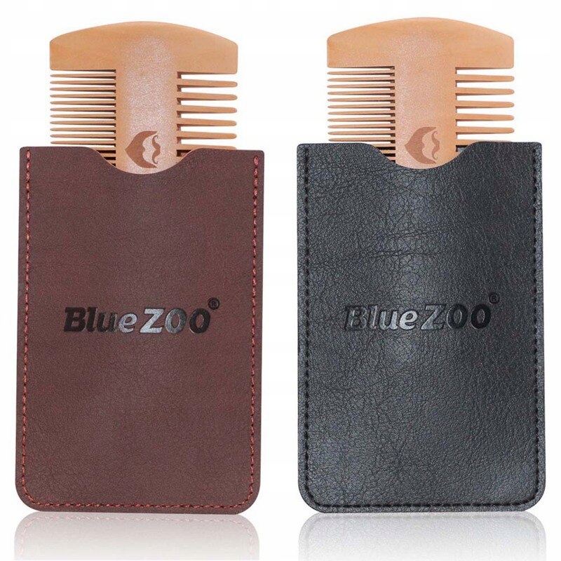 ДЕРЕВЯННАЯ РАСЧЕСКА, ДВУХСТОРОННЯЯ ПЛЮС ЧЕХОЛ ИЗ ИСКУССТВЕННОЙ КОЖИ, АНТИСТАТИЧЕСКАЯ