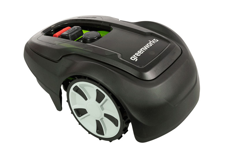 Особенности могущественного робота: h2> - Greenworks Optimow 5, использует модуль Bluetooth для управления его независимым скачей, используя мобильное приложение GreenGuide. зарядка.