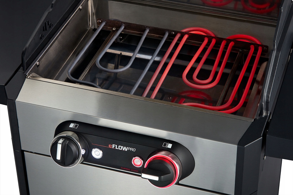Электрический гриль Enders eFlow PRO 2 Turbo Shadow Series позволяет осуществлять как прямой, так и непрямой гриль благодаря двум зонам нагрева. Вы можете использовать левую, правую или обе зоны одновременно в зависимости от ваших предпочтений. Кроме того, для людей с повышенными требованиями предусмотрена Турбо-зона, которая использует полную мощность устройства в 3 кВт и готова к работе уже через короткое время после запуска.