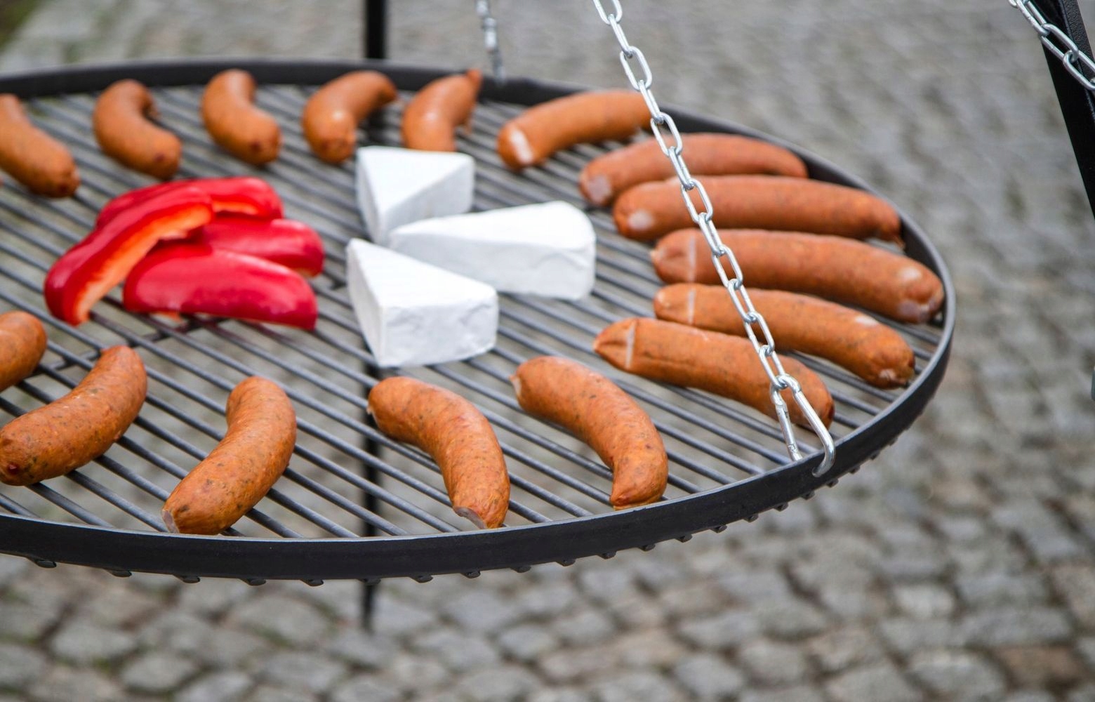 Трипод имеет порошковое покрытие, что повышает его устойчивость к погодным условиям. Массивная решетка из натуральной стали и толстых материалов вместит большое количество продуктов.