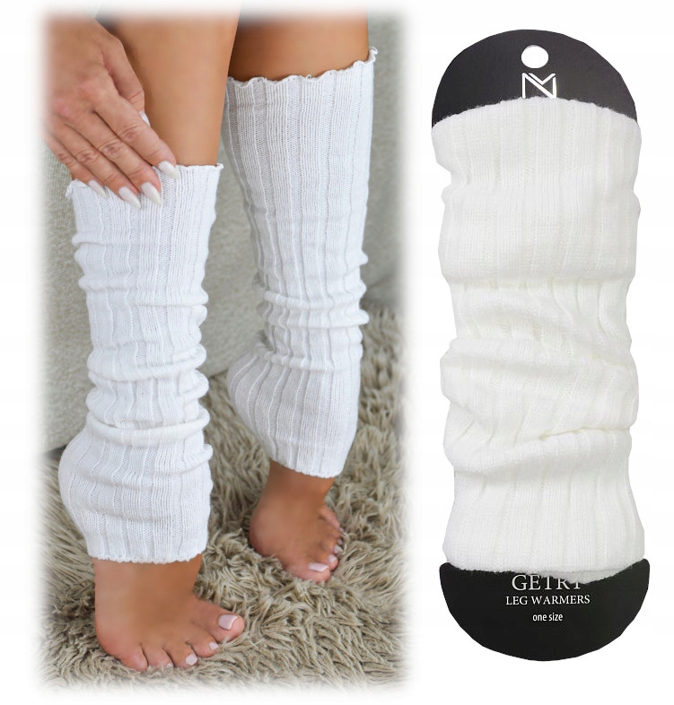 OCIEPLACZE na nogi GETRY MŁODZIEŻOWE WEŁNA CIEPŁE grube NOVITI białe V033A