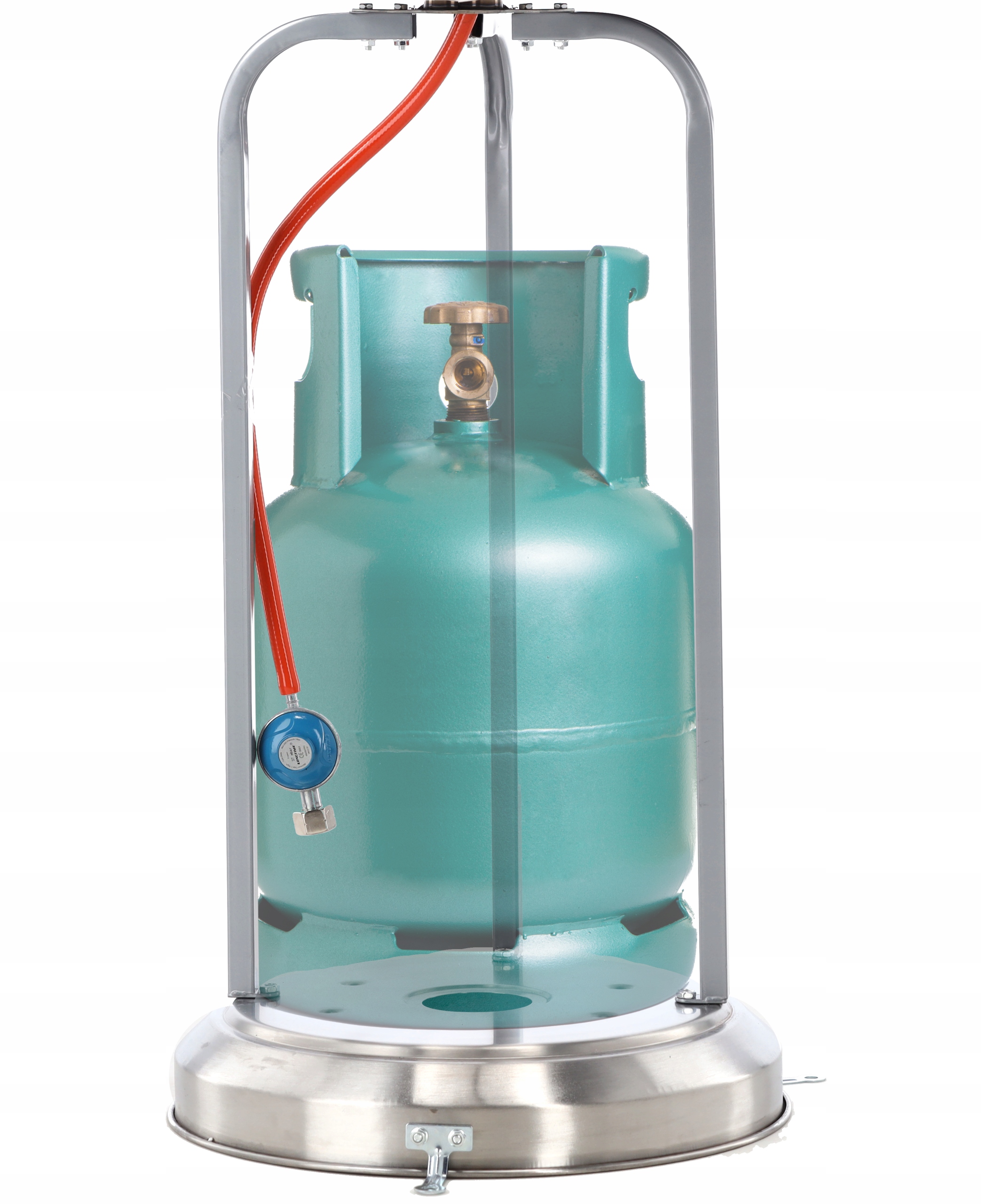 Нагревательные зонты не требуют подключения к электричеству. Работают на сжиженном газе — пропане. В этом случае он работает лучше, чем пропан-бутан, поскольку его температура замерзания составляет -40°С. Пропан подается по шлангу из баллона.