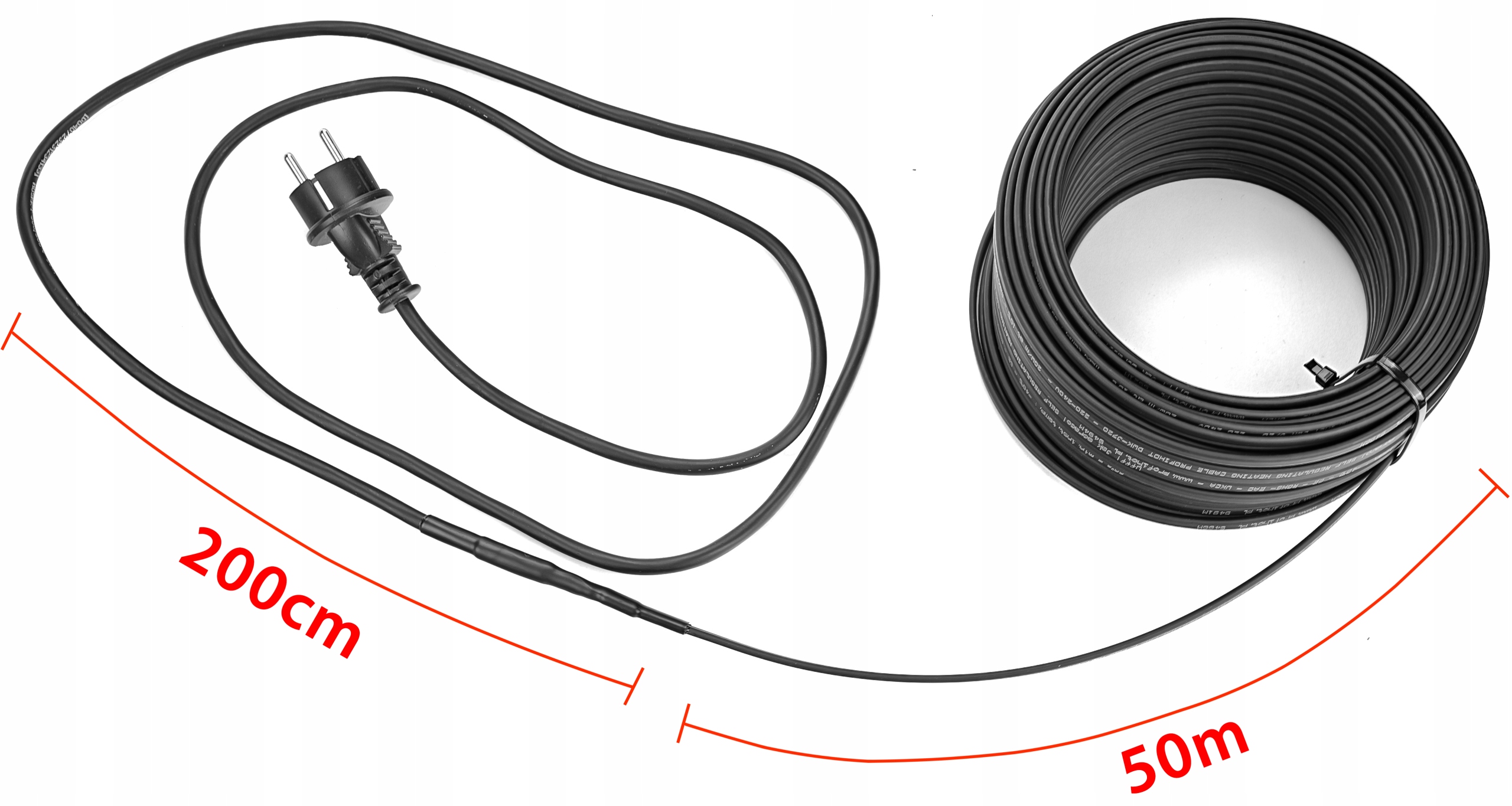 НАГРЕВАТЕЛЬНЫЙ КАБЕЛЬ саморегулирующийся нагревательный кабель с ВИЛКОЙ 230 В | 1000 Вт | 50М