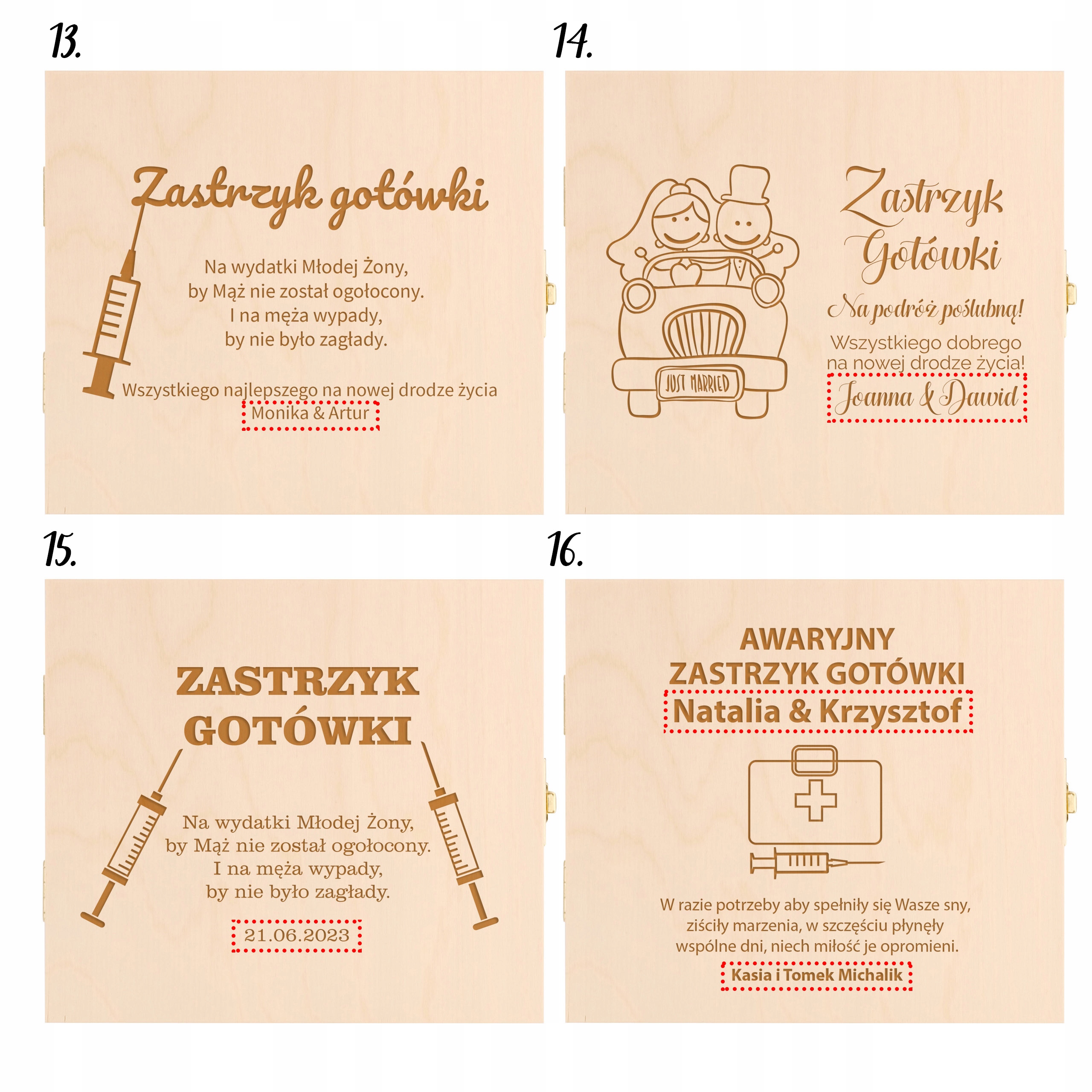 Мы часто задаемся вопросом, как элегантно сделать подарок в виде денег. Деревянная коробка с веселой гравировкой - идеальная альтернатива традиционному «конверту». Подарок, представленный таким образом, наверняка запомнится невестой и невестой.