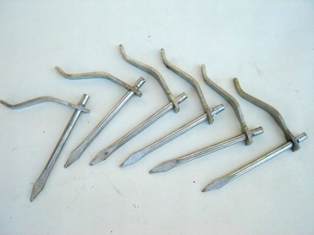 - Один крючок состоит деталей для забивания (что-то вроде гвоздя) и отогнутой подвижной клиновой части с отверстием для «гвоздя»,