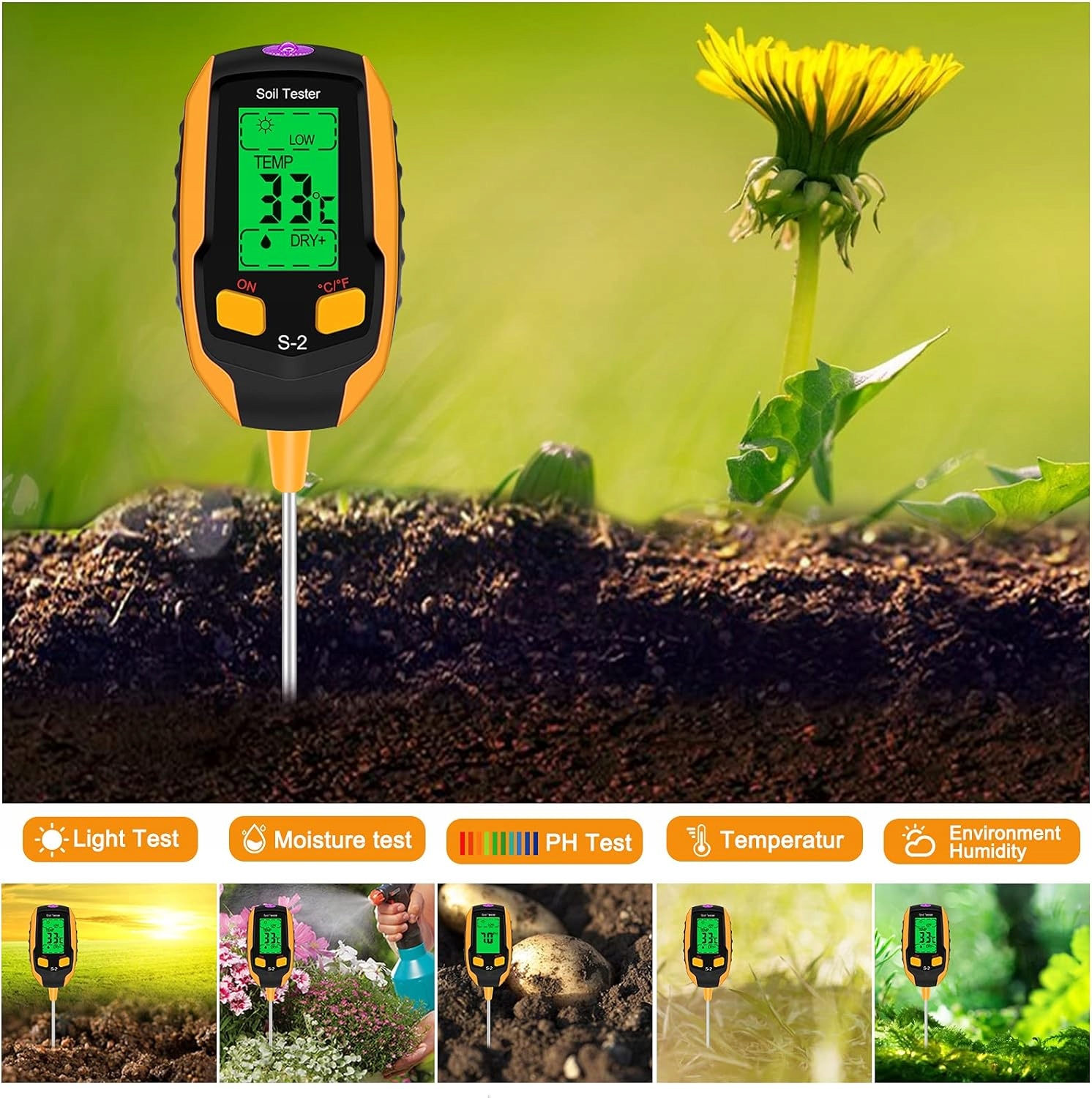 Забудьте о заботах, связанных с уходом за вашим садом или растениями в домашних условиях, благодаря нашему инновационному тесту 5-в-1. 1 тестер почвы. Теперь вы можете легко и удобно контролировать pH, влажность, влажность окружающей среды, уровень освещенности и температуру почвы. Благодаря ему вы будете точно знать, когда поливать почву, измеряя влажность, pH, температуру и уровень солнечного света, что особенно важно для нежных растений, которые реагируют на чрезмерный или недостаточный полив.
