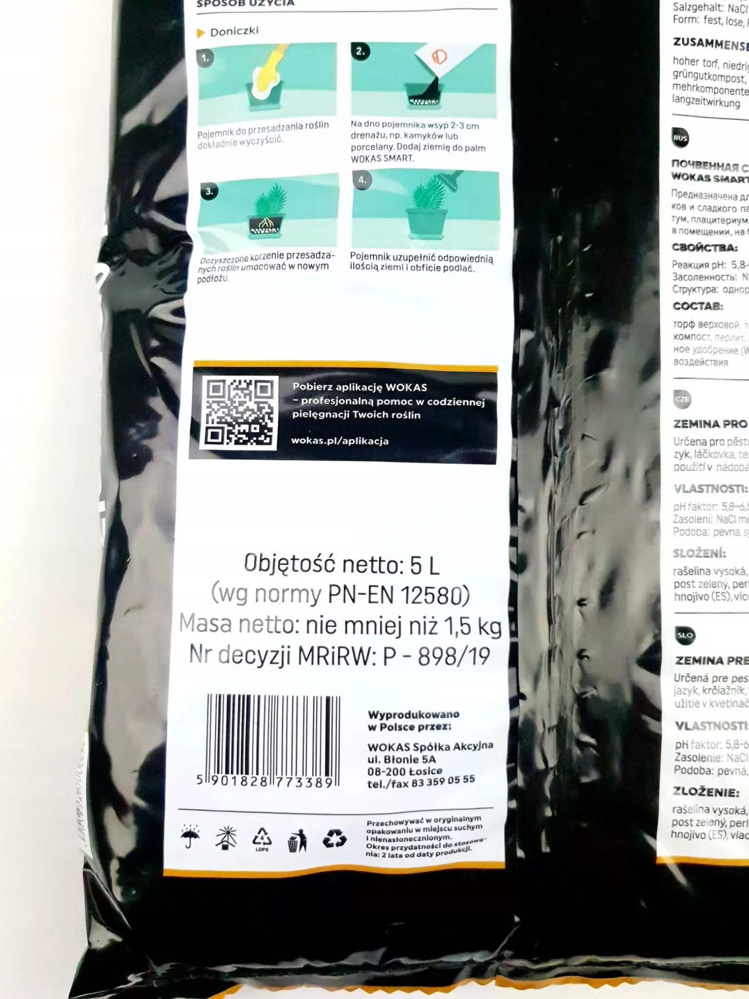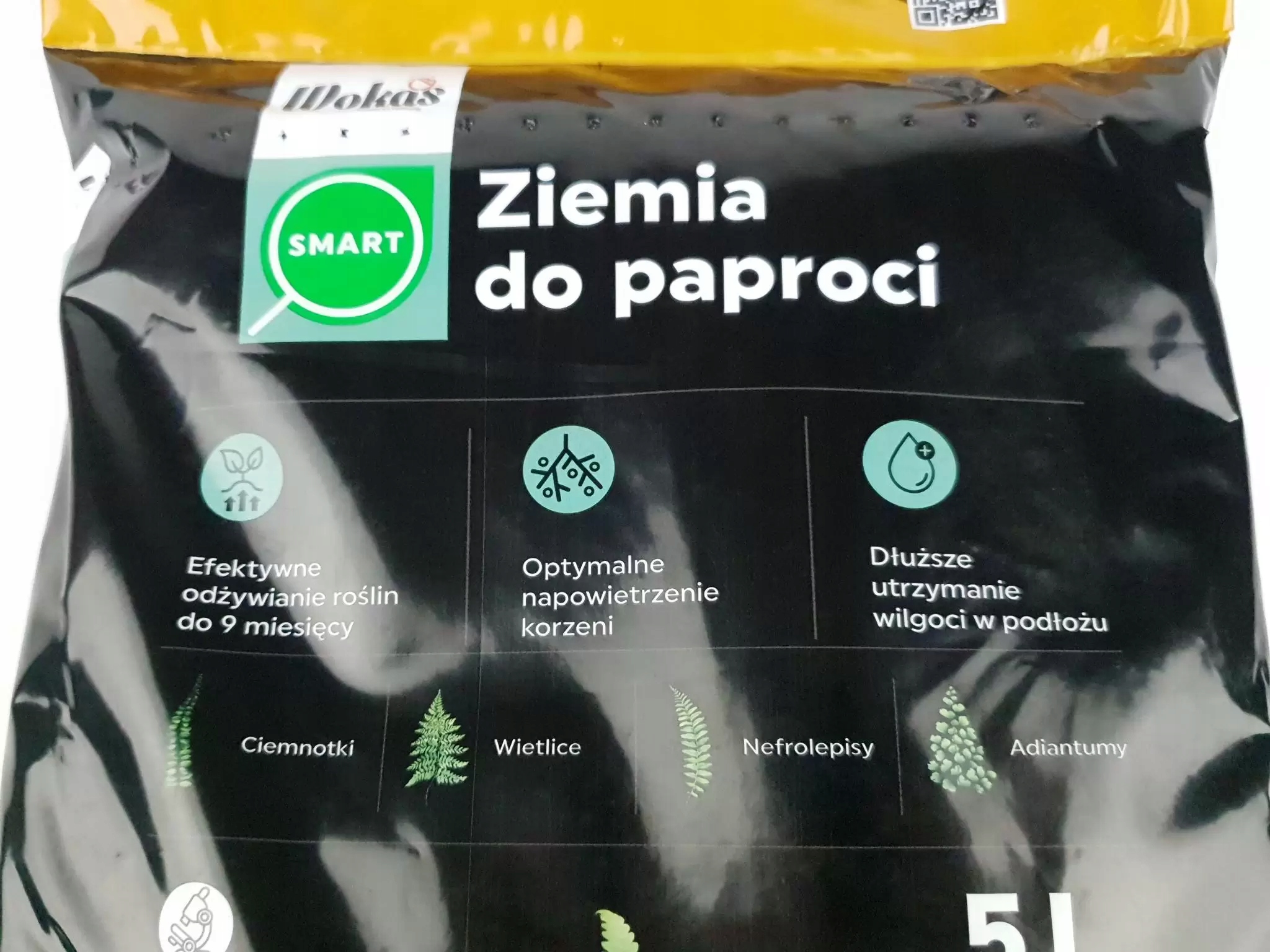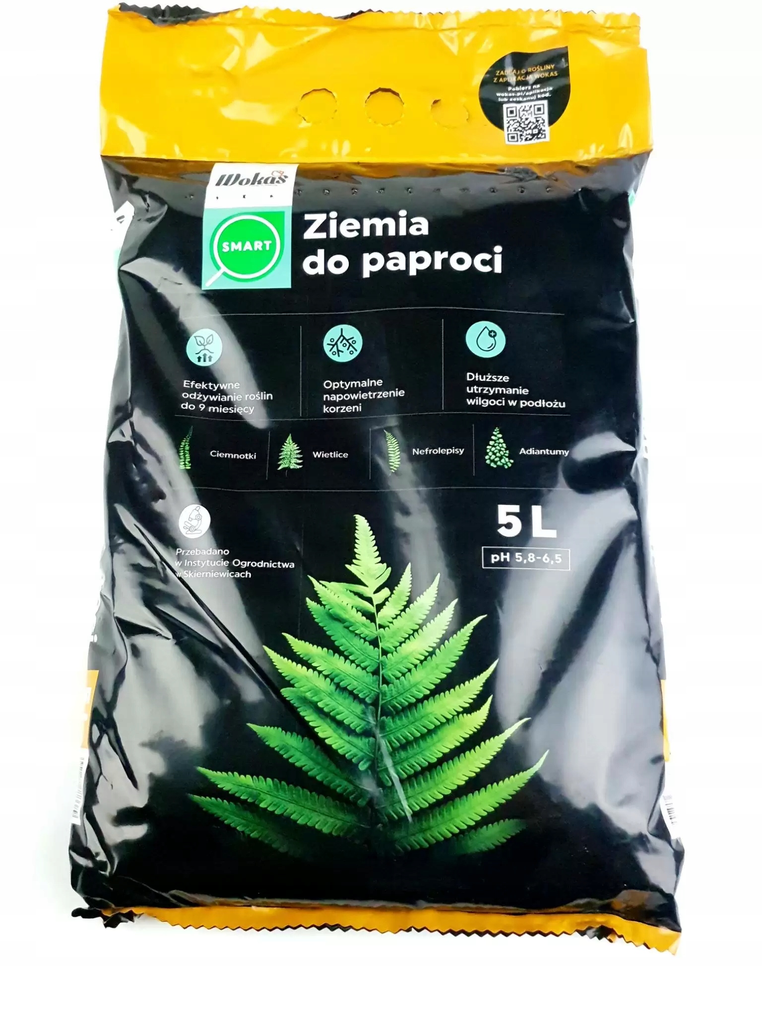 Почвенный субстрат Wokas Smart 5 л для папоротников, эффективное питание растений. Прекрасно сбалансированная торфяная смесь, усиленная удобрением длительного действия.