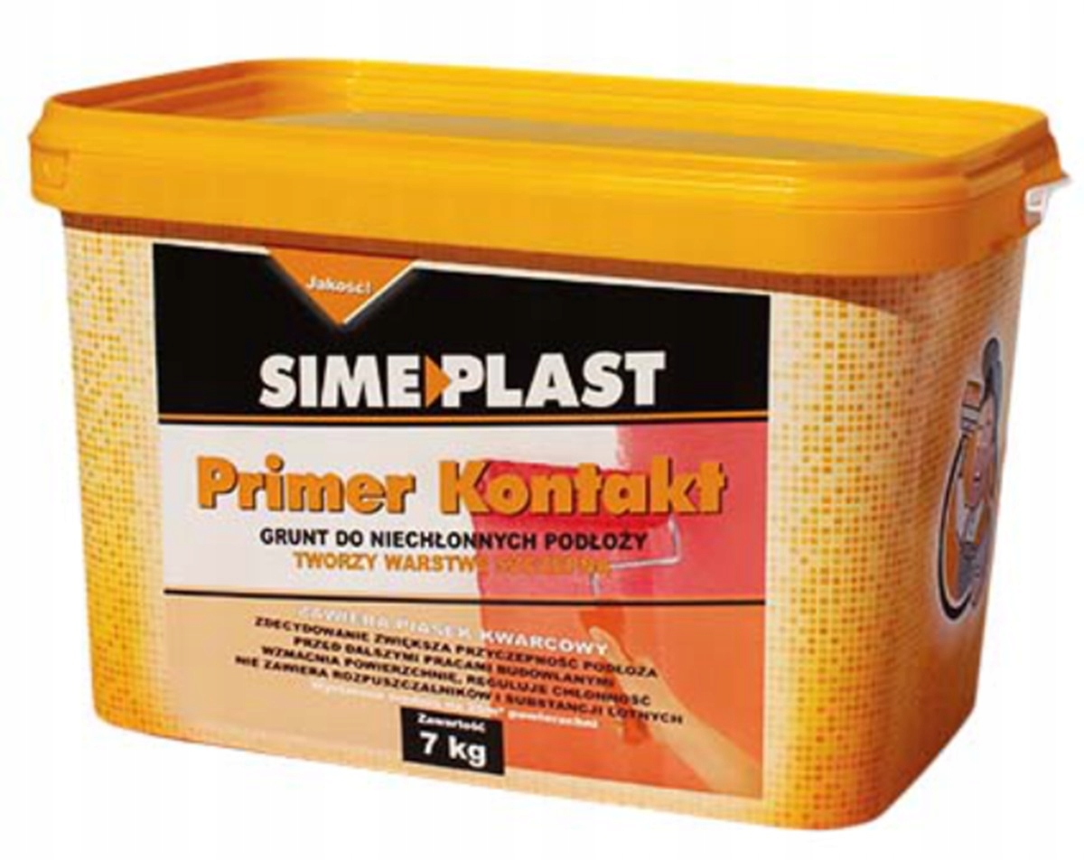 Праймер Контакт – готовая к использованию грунтовка изготовлен на основе смеси производных акриловых сополимеров, минерального наполнителя и выбранных модификаторов, предназначен для грунтования плотных и невпитывающих оснований для всех видов строительных работ. Primer Kontakt характеризуется очень высокой адгезией к минеральным основаниям (бетон, цементная штукатурка, цементно-известковая штукатурка, терраццо), к основаниям, покрытым хорошо сцепляющимся лакокрасочным покрытием, а также на основе пластика, гипсокартона, плит OSB и стеклянных поверхностей (например, плитка) и т. д. Primer Kontakt создает связующий слой с высокой несущей способностью между основанием и штукатуркой, клеем или напольным покрытием и снижает впитывающую способность основания. Средство окрашено в красный цвет, что позволяет легче контролировать его равномерное распределение по поверхности. Можно использовать внутри помещений.