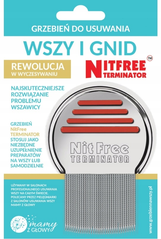 Расческа от вшей и гнид NitFree Terminator зарегистрирована в Польше как медицинское изделие. В некоторых странах (например, в Великобритании) – бесплатно в рамках медицинского страхования. Используйте расческу NitFree Terminator как необходимое дополнение к препаратам от вшей или самостоятельно.