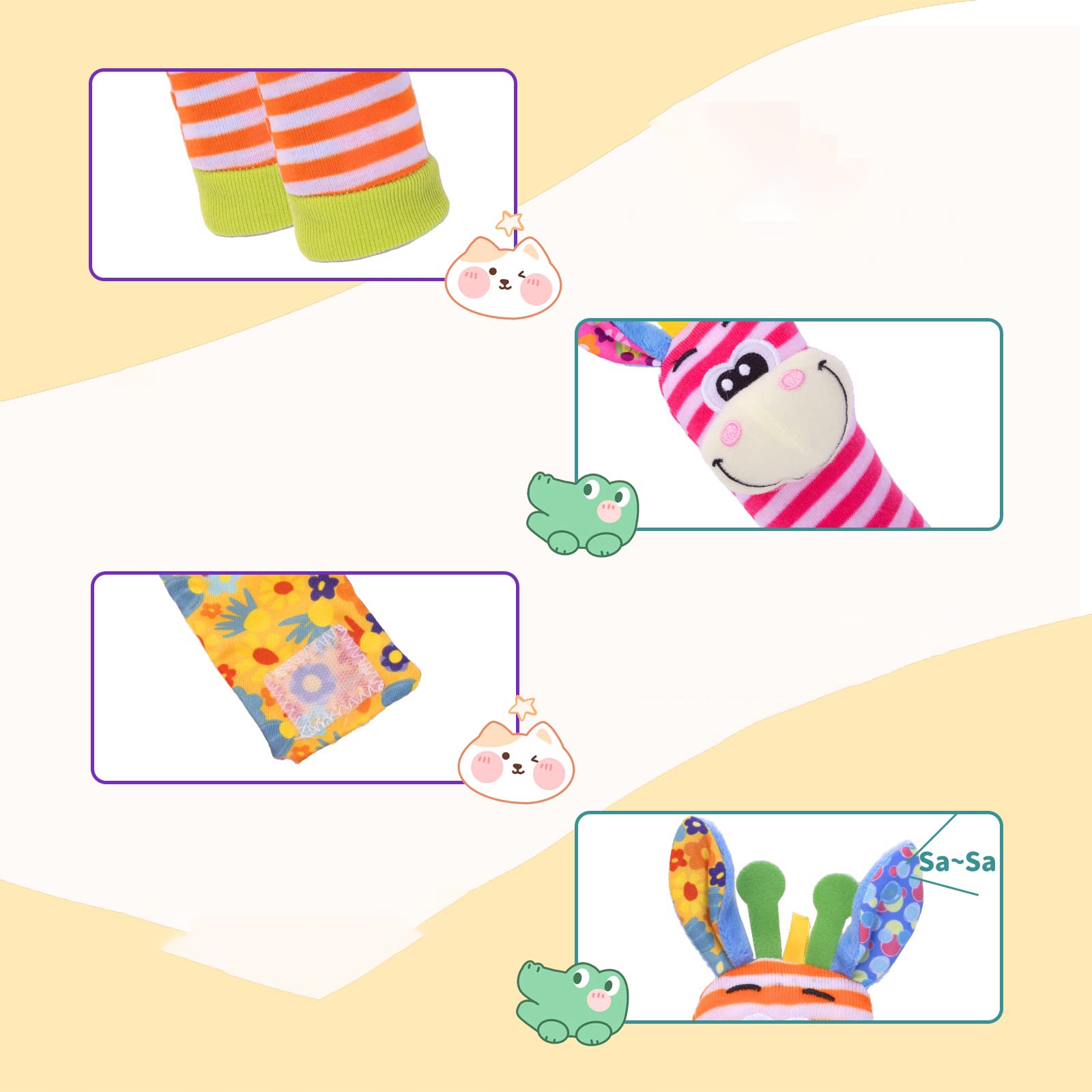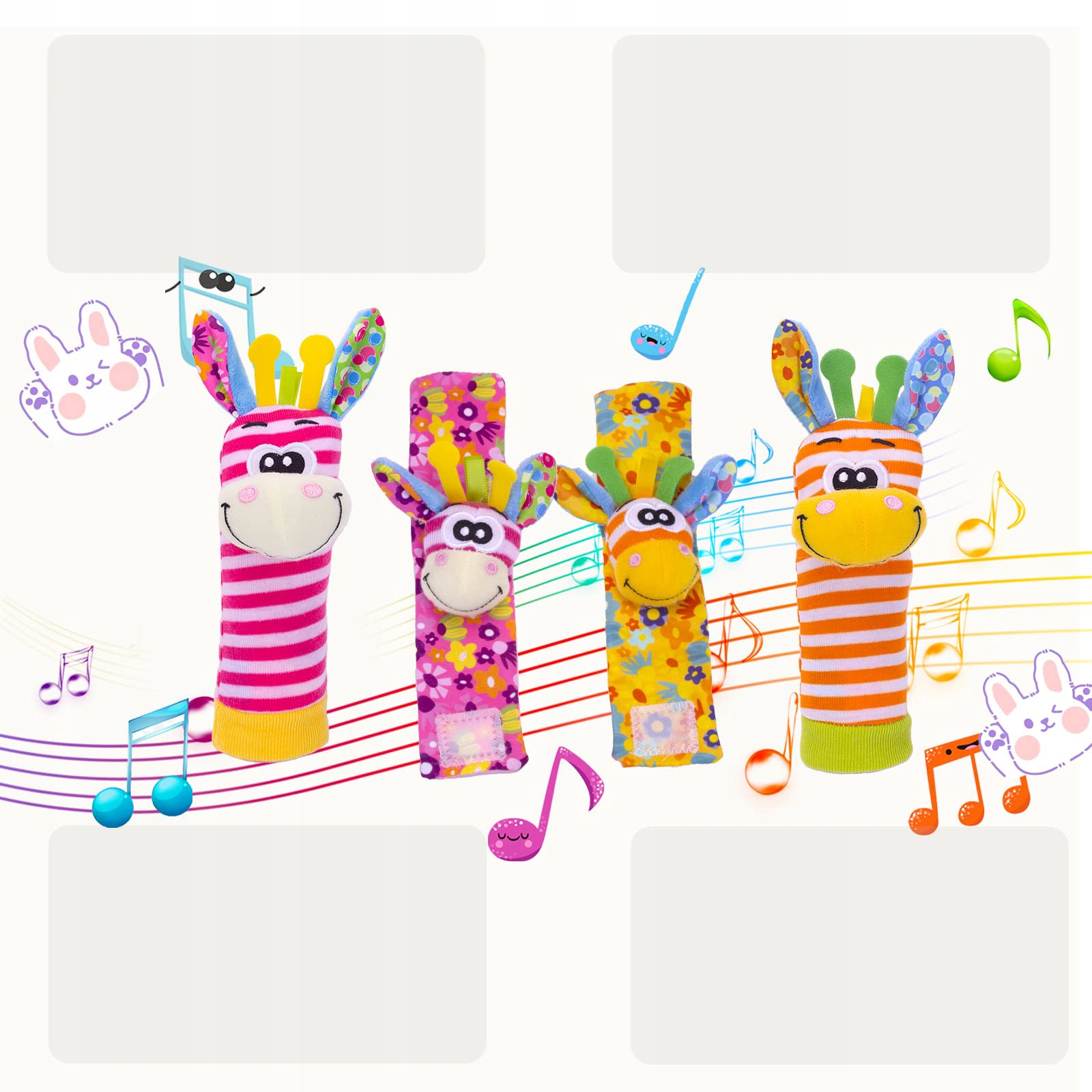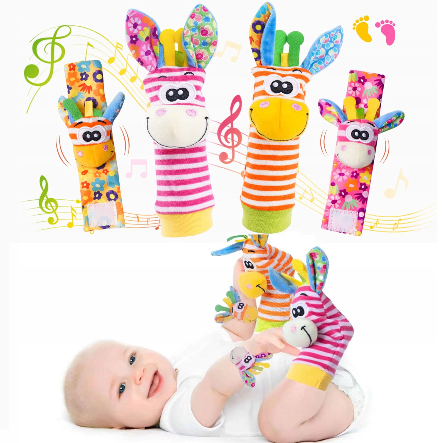 GRZECHOTKI DLA NIEMOWLĄT SKARPETKI OPASKI NA RĄCZKI GRZECHOTKA 4 szt.