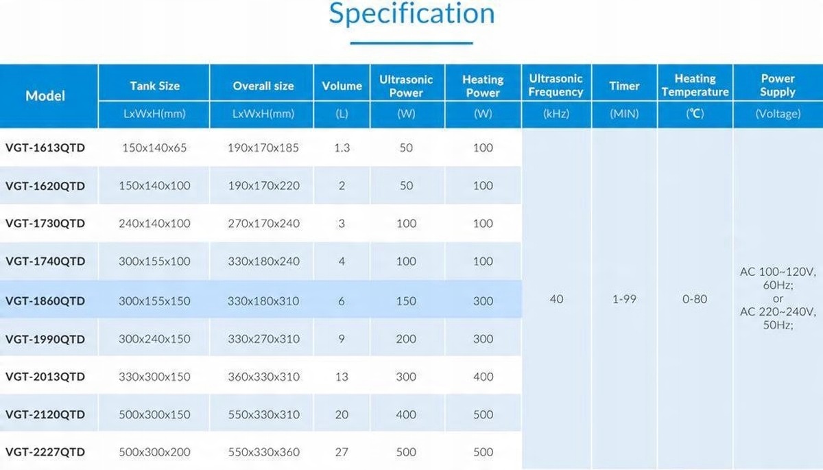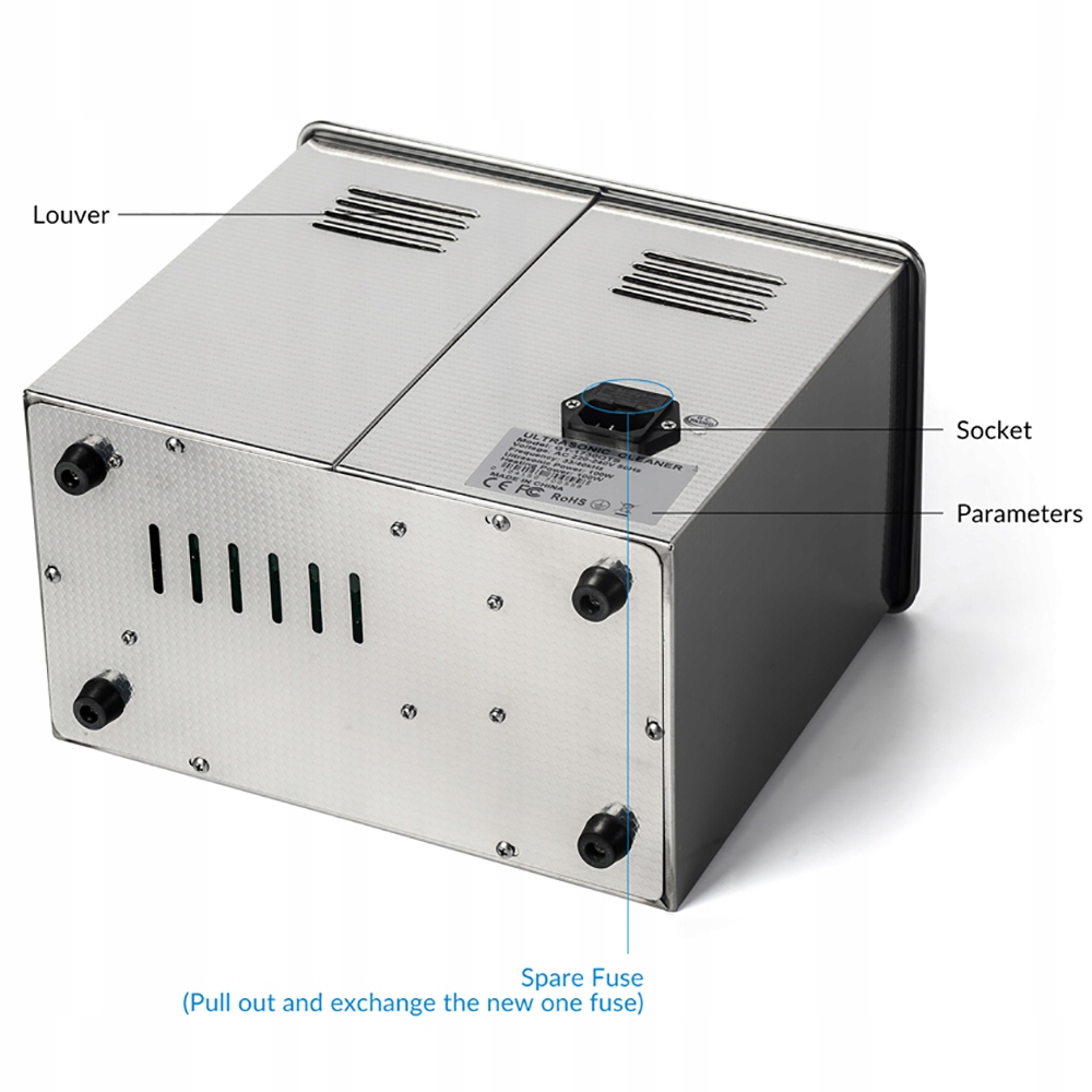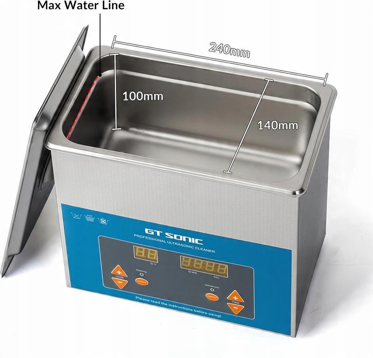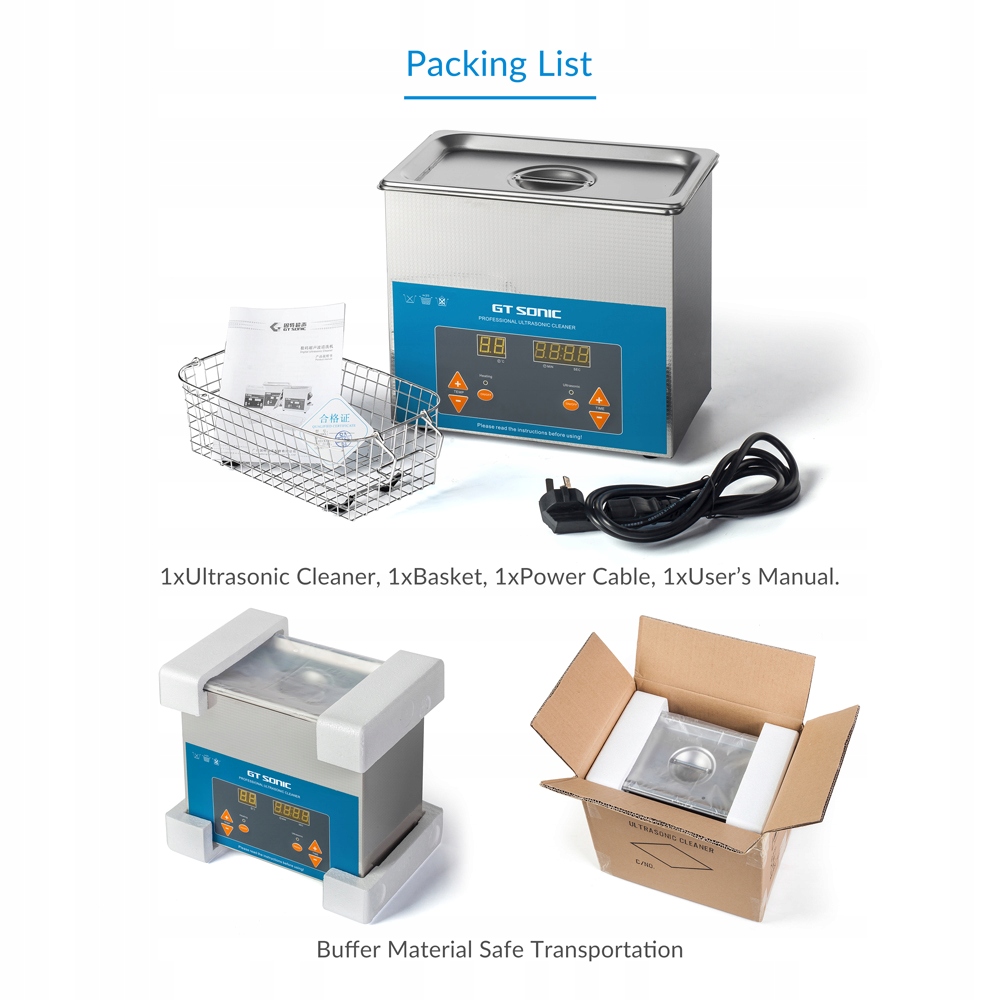 - В ультразвуковой стиральной машине GT SONIC используется мощный и надежный генератор мощностью 100 Вт и частотой 40 кГц, который обеспечивает высокую выходную мощность и превосходную стабильность. Бак для стирки изготовлен из нержавеющей стали SUS304 толщиной 0,04 дюйма (1 мм) с традиционным тисненым покрытием в направленном стиле. Вся стиральная машина яркая, прочная и долговечная.