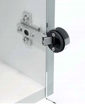 Петля легко регулируется благодаря трехплоскостной регулировке, в комплект входит маскировочный колпачок и переднее крепление. В устройстве используется выдвижная направляющая и закрывающий механизм в виде стягивающей пружины.