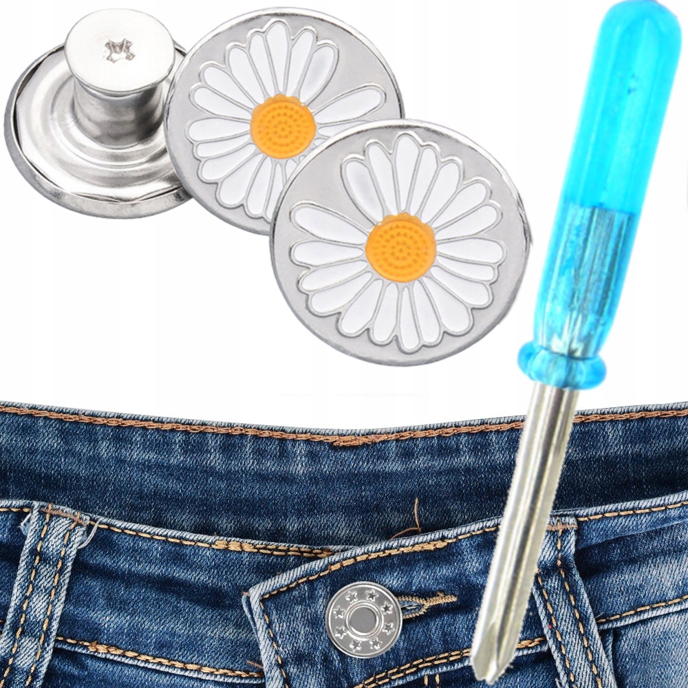 Благодаря металлической вкручивающейся кнопке вы сможете отремонтировать любимые джинсы за несколько секунд, не посещая портного. Вам не потребуются дополнительные инструменты, поскольку в комплект входит отвертка.