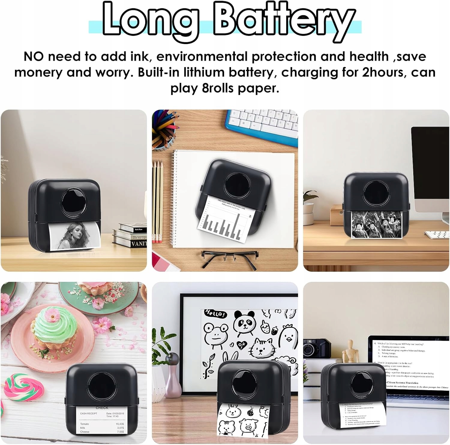 - 【Технология тепловой печати】: Bluetooth Thermal Printer использует технологию тепловой печати, не использует чернила, более удобна в использовании, экологически чистое, веселее и практично. Тепловые черно -белые принты, так что ваши черно -белые фотографии выглядели элегантными и прохладными. Совет: Если после многократного использования фотопринтера, распечатка не ясна, вы можете стереть лазерный ремень с помощью алкогольного принтера (лазерный ремень в бумажной камере). Печатная бумага