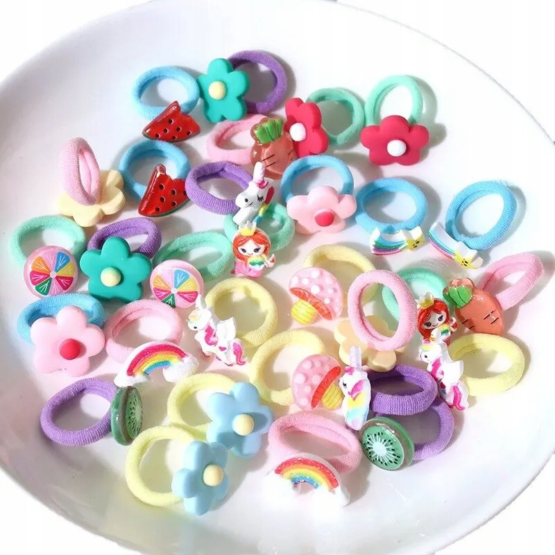• Модный дизайн: Эти резинки для волос украшены модным мультяшным рисунком, что делает их стильным дополнением к наряду любой маленькой девочки.