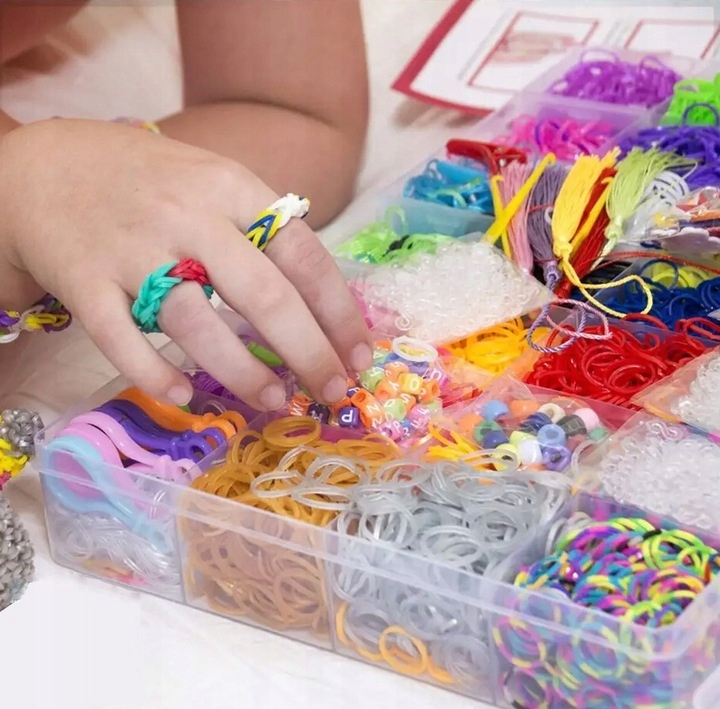 В наборе не только огромное количество резинок, но и крючки, рогатки, бусины, подвески и буквы. Все эти элементы позволяют создавать уникальные и персонализированные украшения, которые станут настоящим хитом среди ваших друзей.
