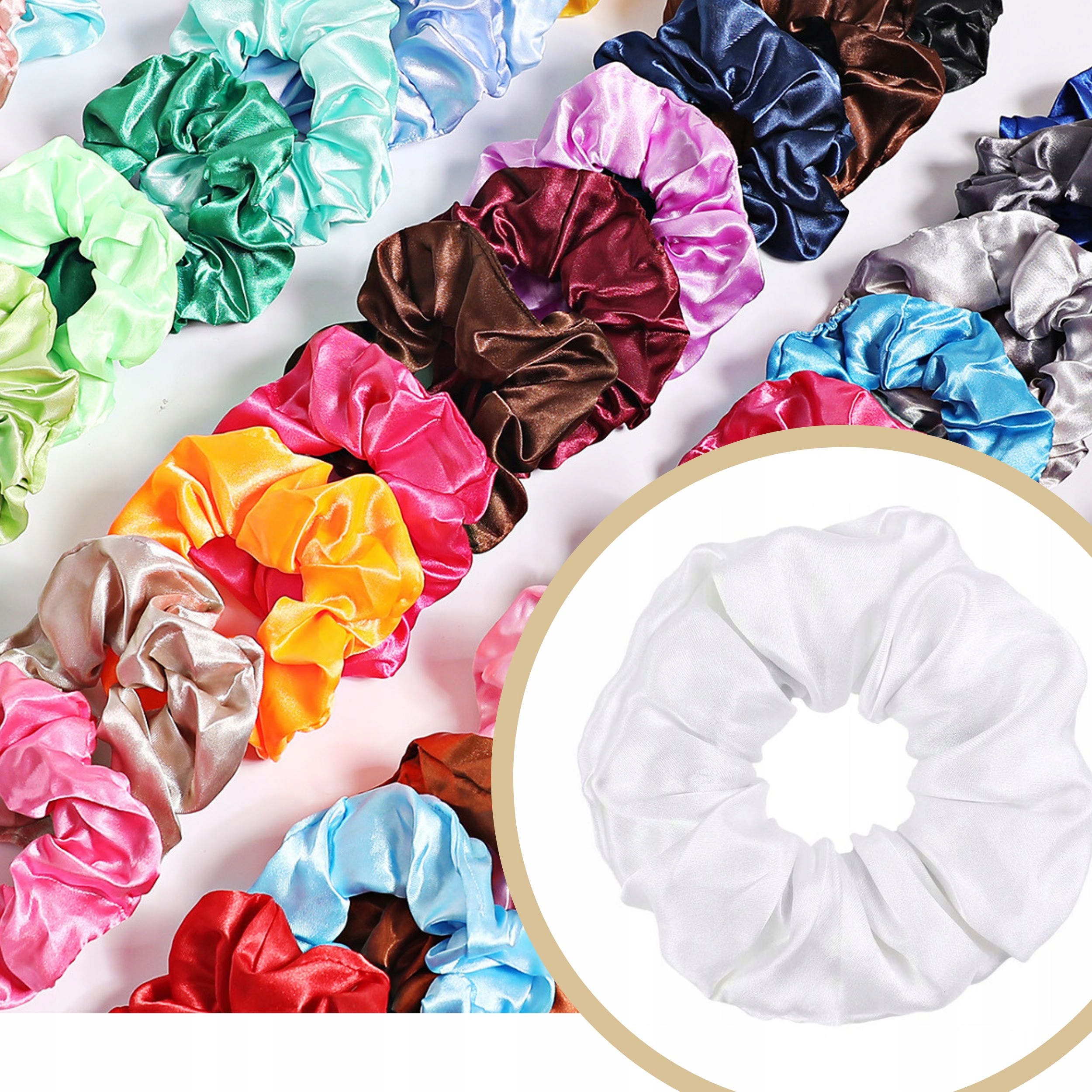 Гумки для волосся SATIN, білі, БЕЗПЕЧНІ, блискучі, ЗРУЧНІ